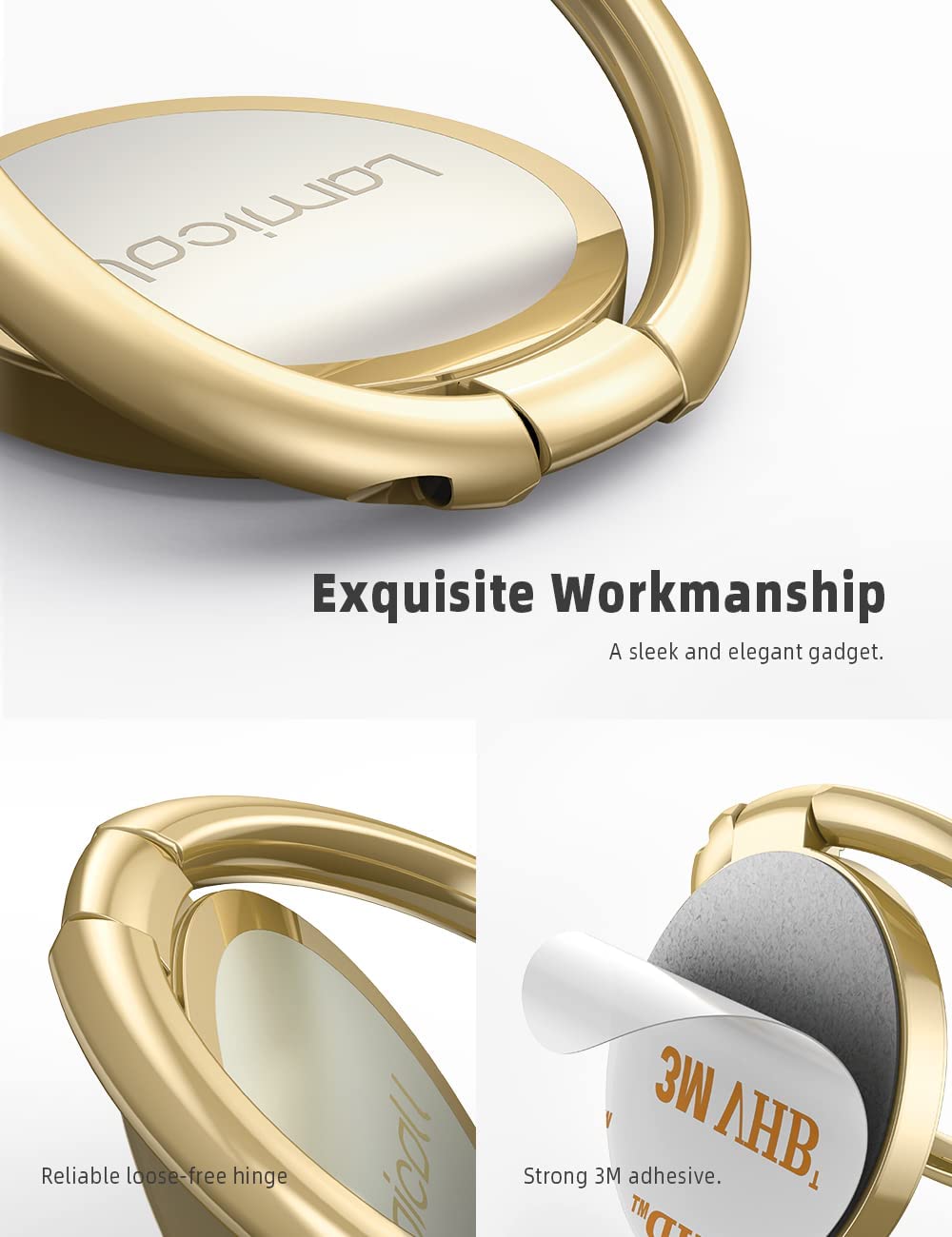 • 【High Quality Material】 The finger ring kickstand is made of high-quality zinc alloy and stainless steel. Zinc alloy has good ductility and features ruggedness, which contributes to long lifespan. Polished ring holder, smooth edge, no worries of scratches to your fingers.