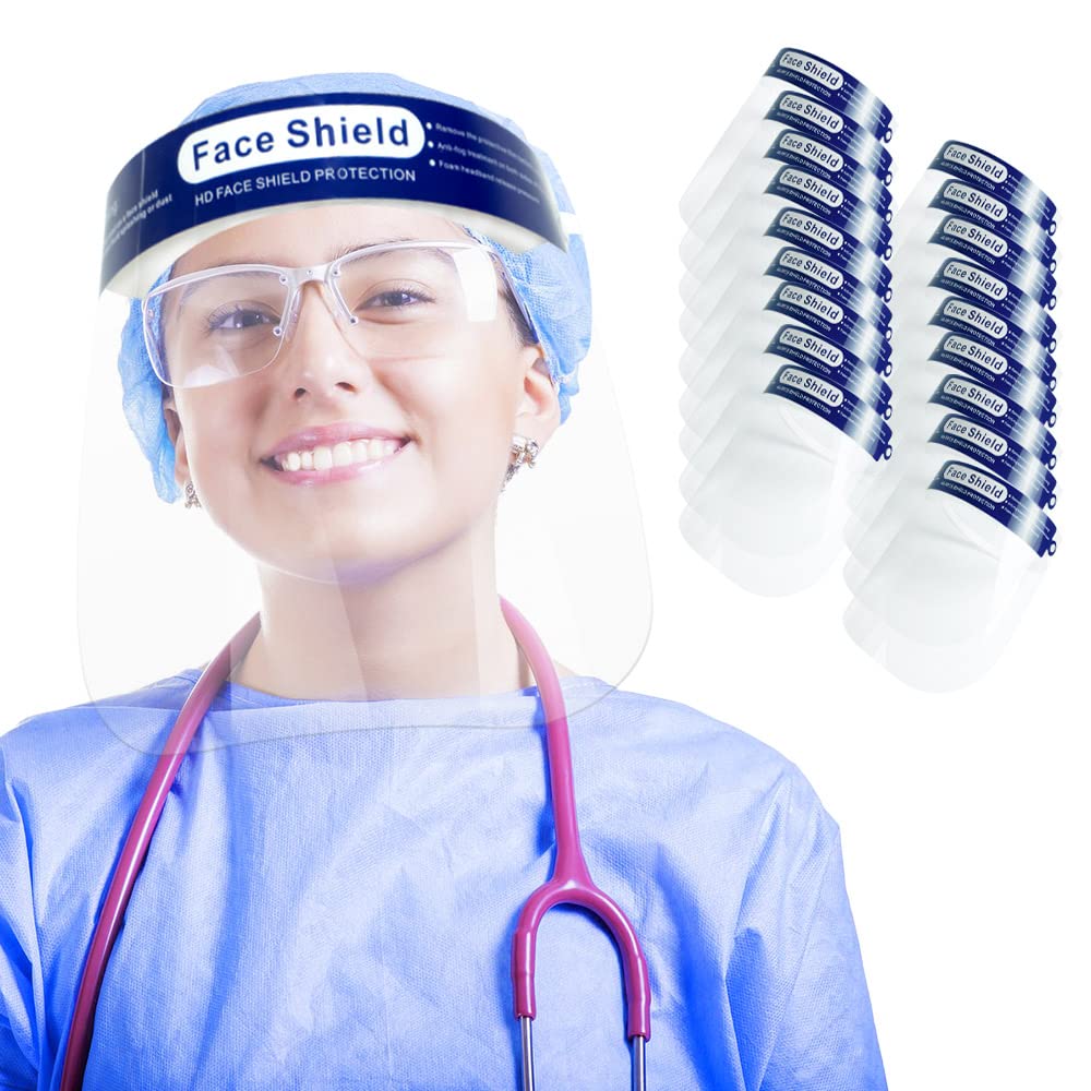 Clear face shield for adults: Adult anti fog face shield for women and men. Lightweight and portable ,keeping these anti fog face shield mask in your backpack, home, workplace or car so that you can use plastic face shield mask outdoors, kitchen and office to protect your health anytime.