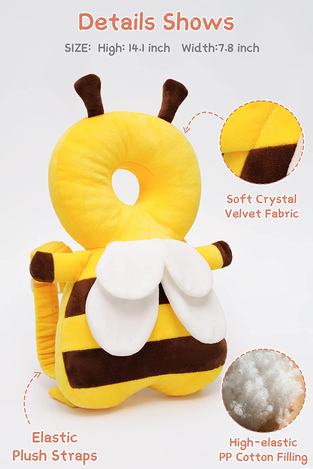The adorable cartoon appearance that baby deeply loves and can be used as a backpiece protector pad or as a toy.