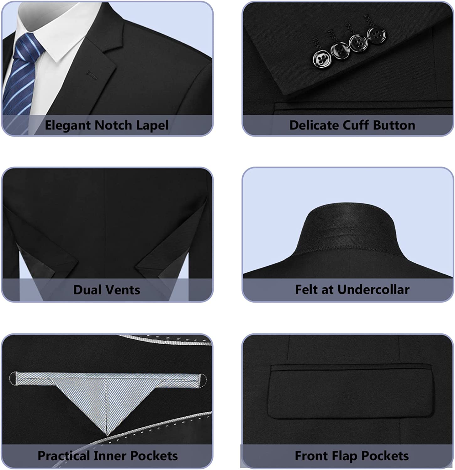 【PREMIUM FABRIC】 With 65% Polyester and 35% Rayon, this slim suit for men is comfortable, breathable, soft and easy to keep the shape. The durable stitching makes it have a long lifespan.