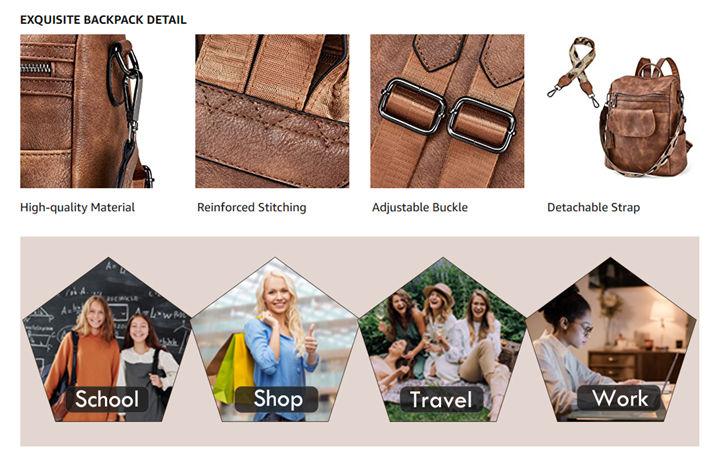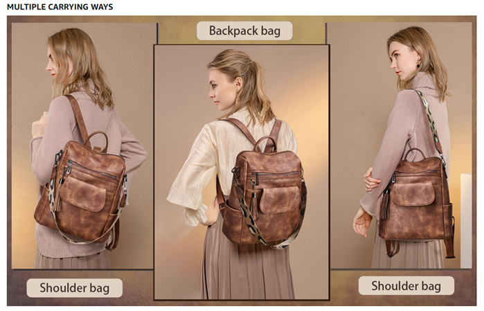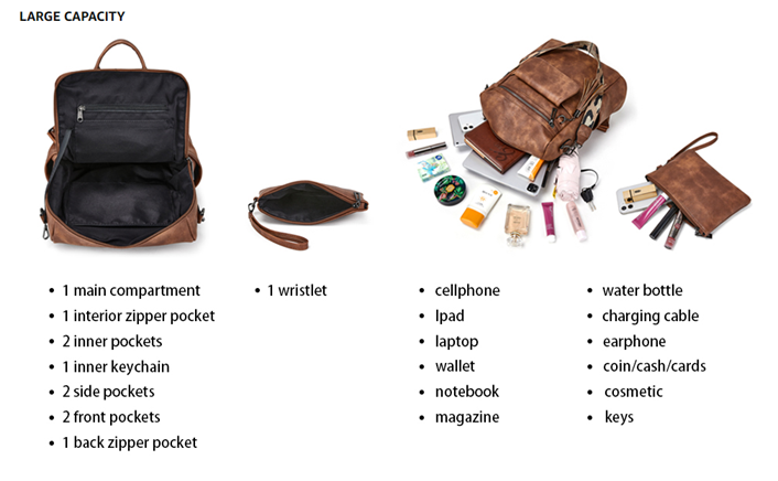【LARGE CAPACITY】This leather backpack purse for women adopts a large vertical opening at the top, which is very convenient for loading items. 1 inner zipper pockets, 2 inner slot pockets, 2 front pockets, 2 side pockets, and 1 back zipper pocket. The extra wristlet provides more compartments. Multiple pockets can keep your things well organized.