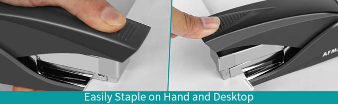 • 【50% EFFORT REDUCED Office Stapler】If hand comfort is your priority, this desktop stapler will do the trick. This desk stapler is ergonomically designed: Fits comfortably in one hand(doubles as a handheld stapler) and staples papers swiftly with 50% effort reduced(support one finger operation), which is ideal for frequent users and hand arthritis suffers without breaking a sweat, especially when stapling thru a thicker bundle of paper.