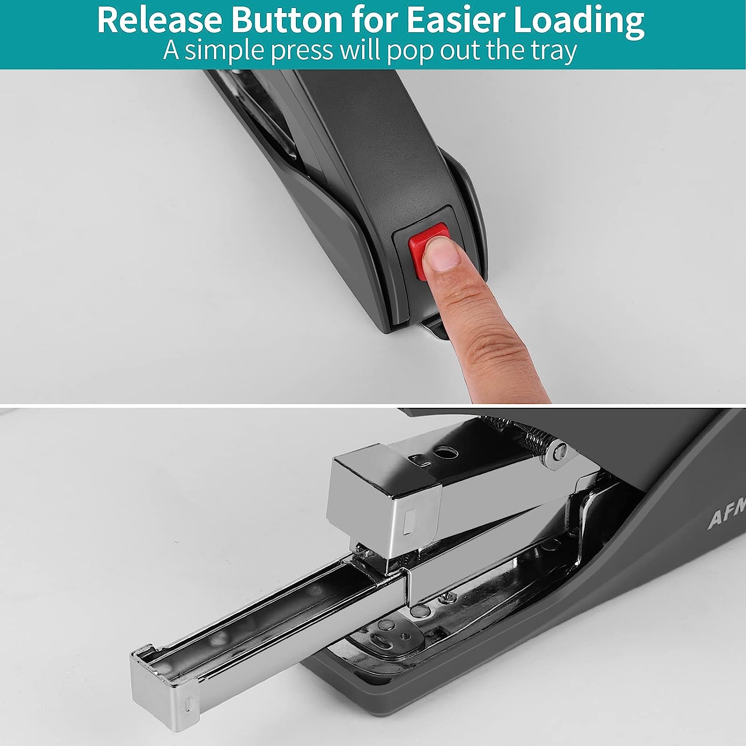 AFMAT Ergonomic Stapler, Low Force, 50 Sheets Capacity, with Reload Button & Built-in Staple Remover, Great for Office, School, Classroom, Home
