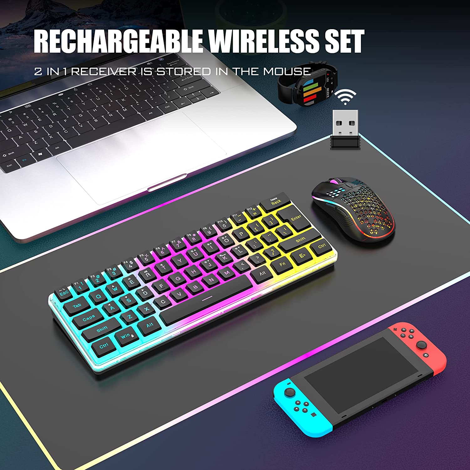 2. The keyboard and mouse share one USB receiver, which is located at the bottom of the mouse. (Only when the receiver is plugged in, the lights of the keyboard and mouse will light up)