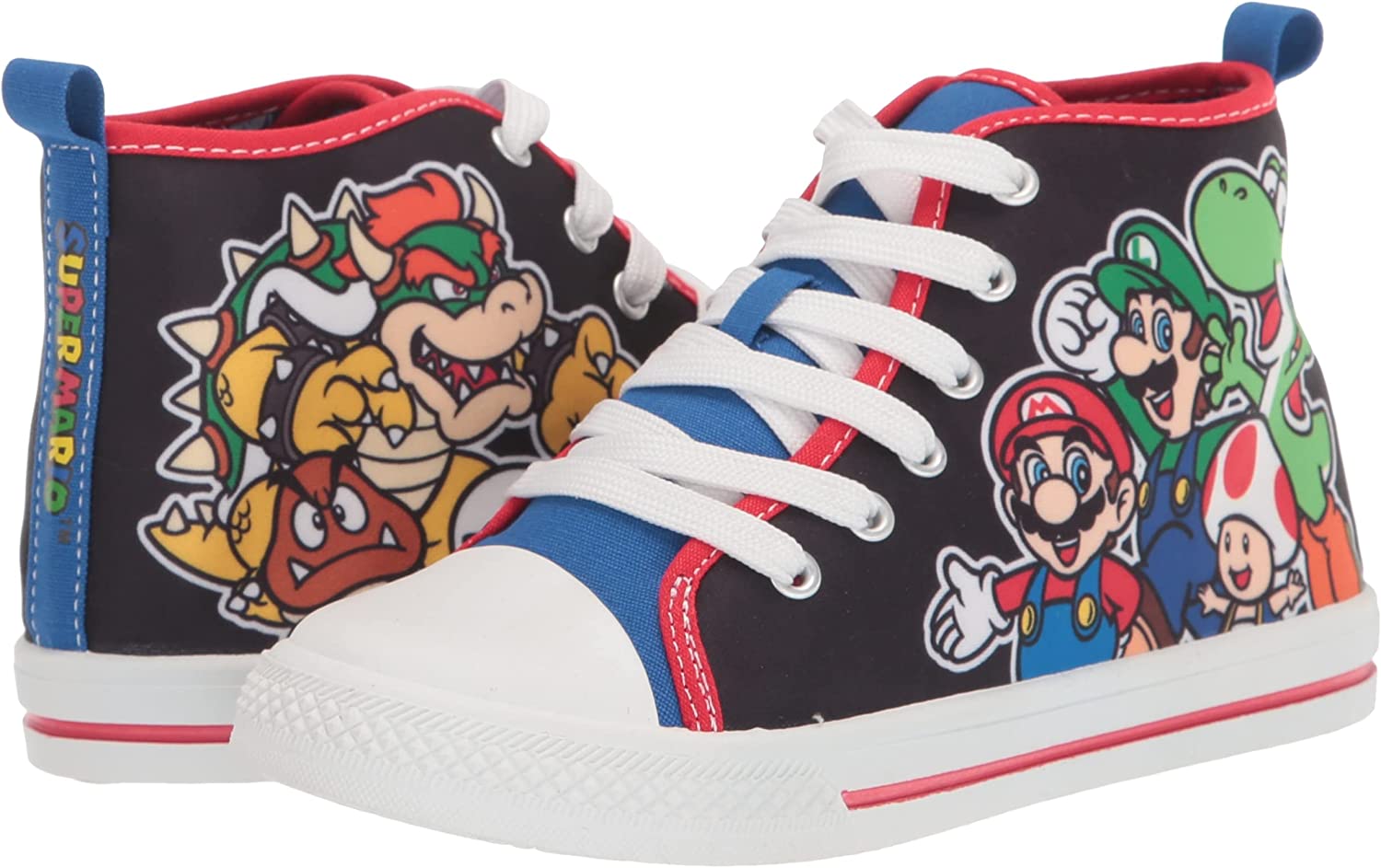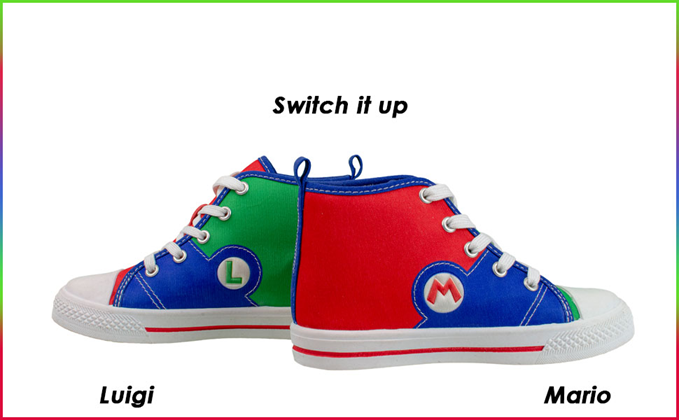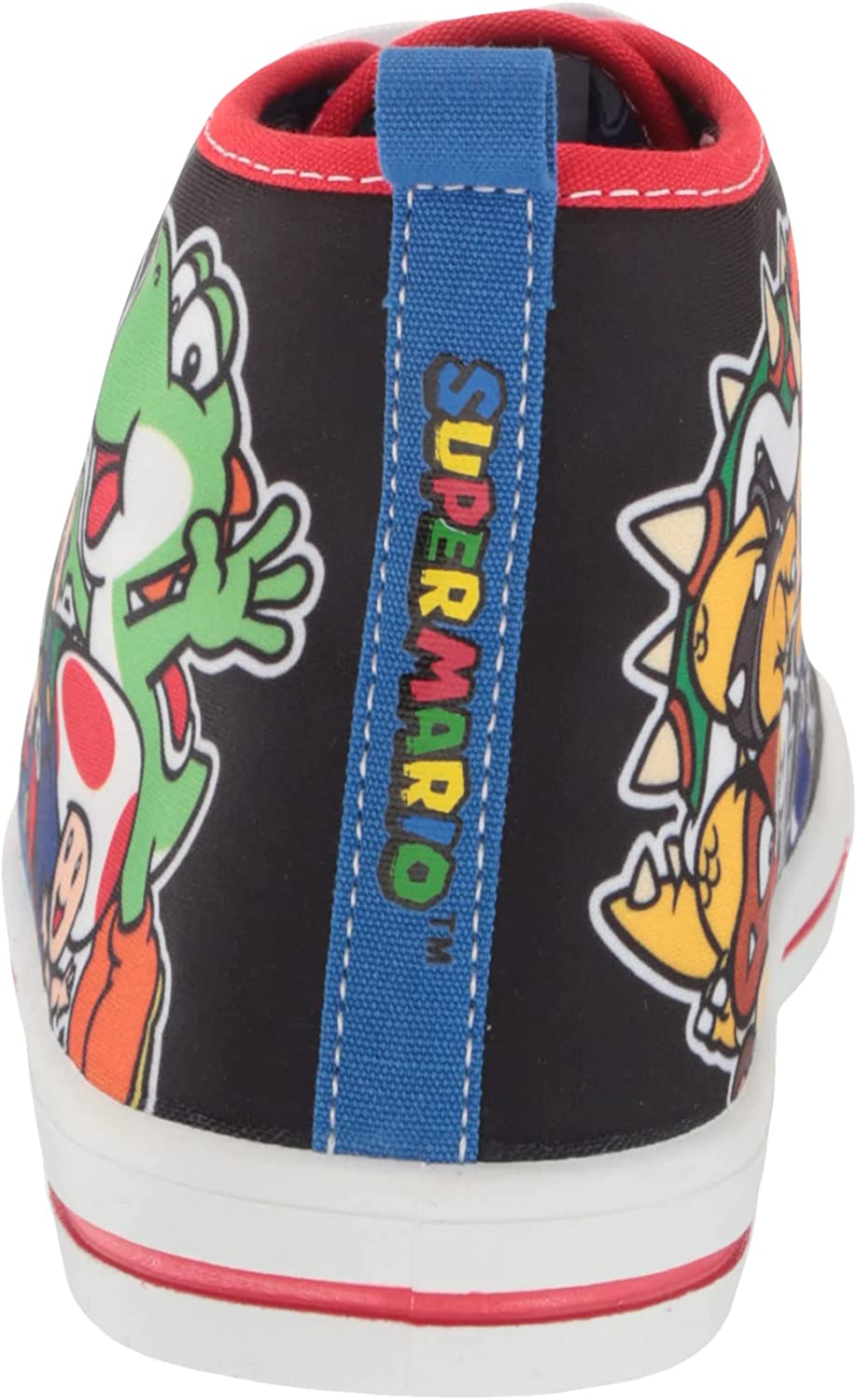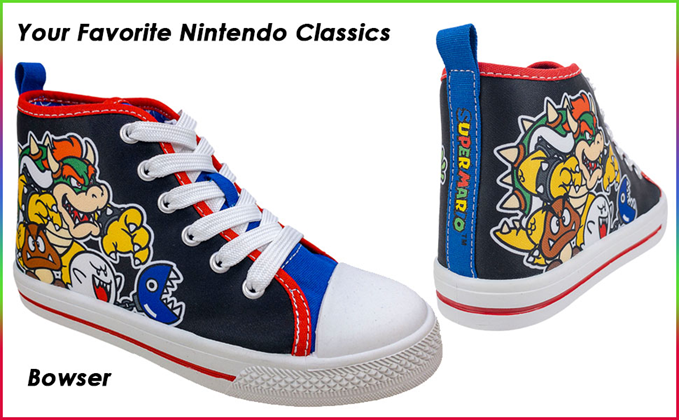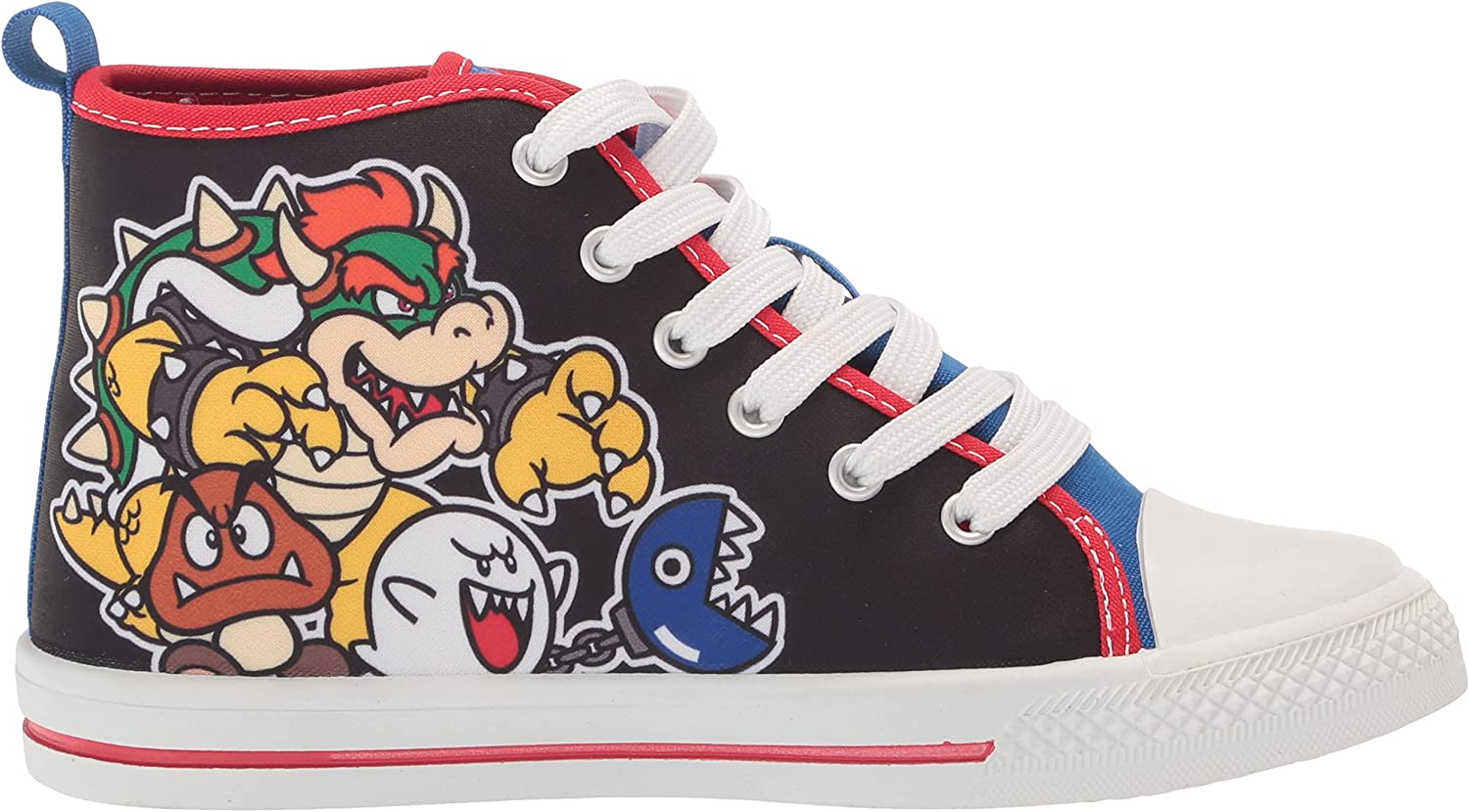 Nintendo Super Mario Brothers Mario & Luigi are back! Enjoy the warmth and comfort of these Hi top skate sneakers, indoors and out! Perfect for any Nintendo, Super Mario, and Mario Bros fan! Shoes have a lightweight canvas upper for premium comfort and flexibility. Mario on one side, and Luigi on the other; bright vibrant Red and Green is the classic, fun, and perfect look for any Nintendo fan! Perfect skate tennis shoe for any weather- especiually in spring and summer for the outdoors. Sizes range from Toddler size 7, to Kids size 3, perfect for ages 4 to 10 - for every Mario, Luigi and Nintendo fan! **Please note, size 7, 8 and 9 come with Red and Green laces, size 10, 11, 12,13,1,2, and 3 come with white laces