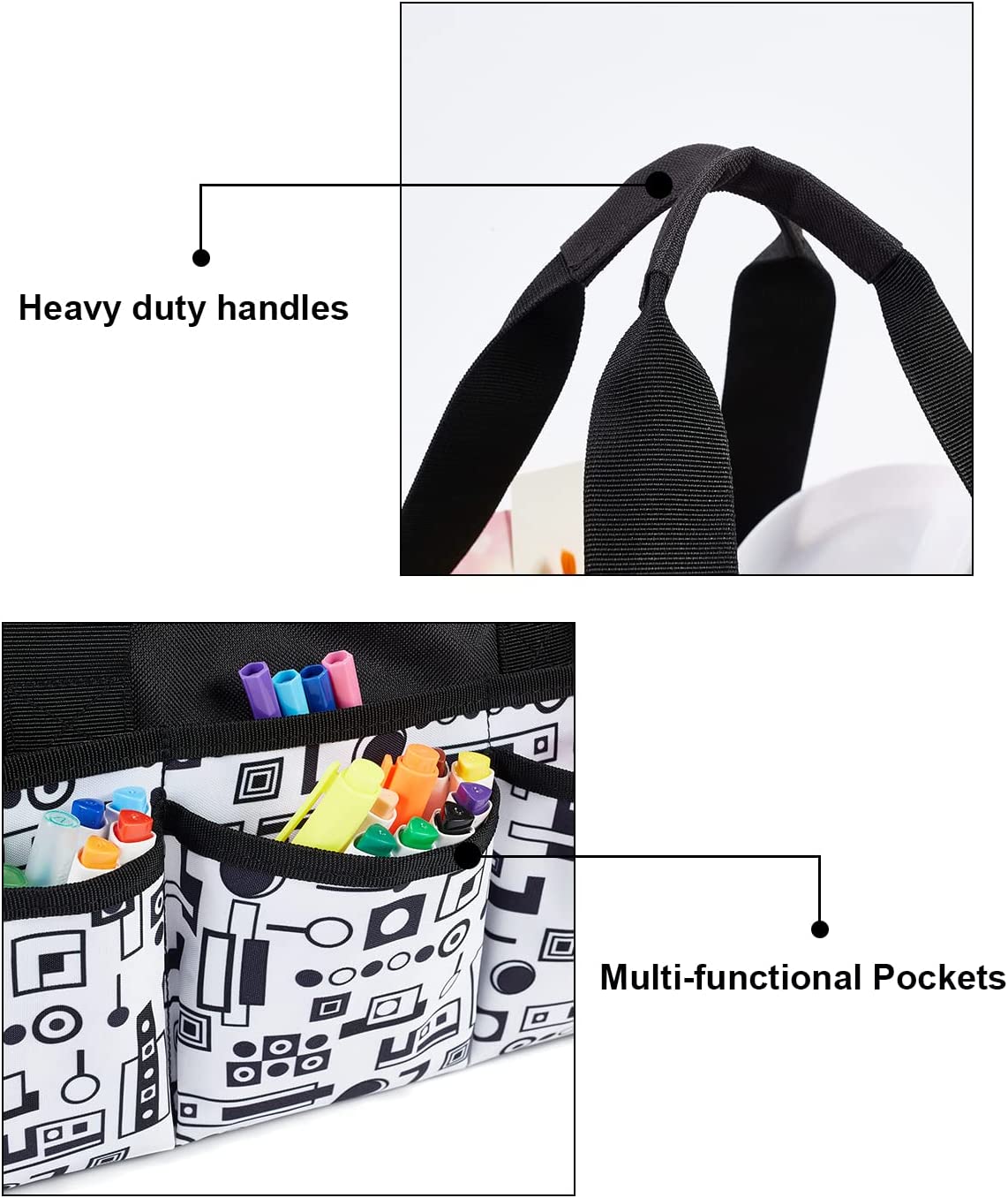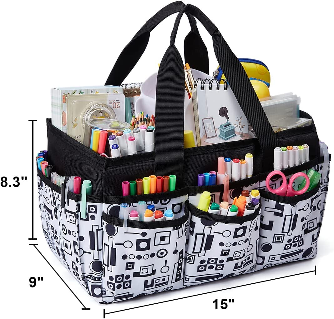• 1. MULTI-PURPOSE - Wide open design with multiple Pockets around this canvas art craft caddy allows it suitable for scrapbook storage,Art &Craft,sewing tools,teaching staff,office supplies,make-up,etc.Moreover,An additional solid PP board in the bottom makes the craft storage bag good in shape and stable in structure.