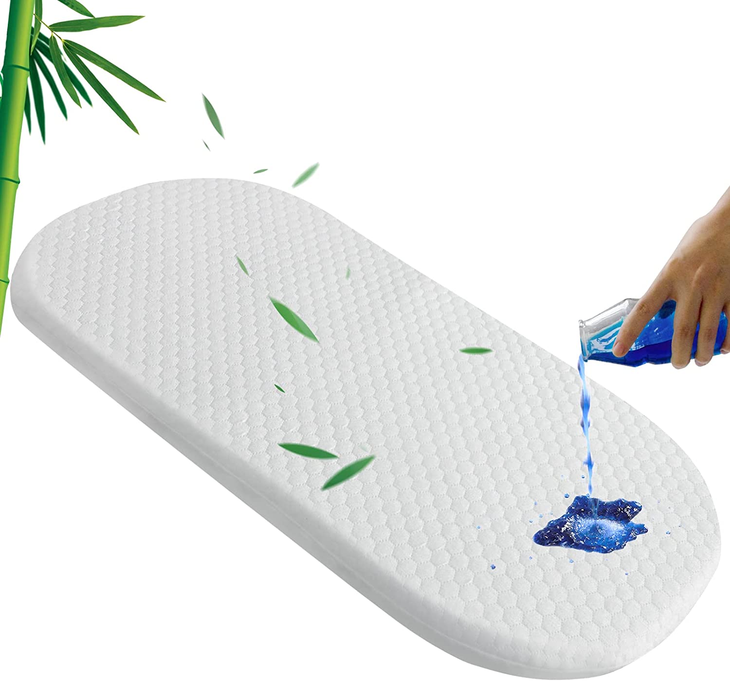 Baby Bassinet Mattress Topper with Waterproof Bamboo Cover 15" x 30" x 1.5", Breathable Oval Bassinet Mattress Pad Ultra Soft, Fit Many Cradle Brand and Style