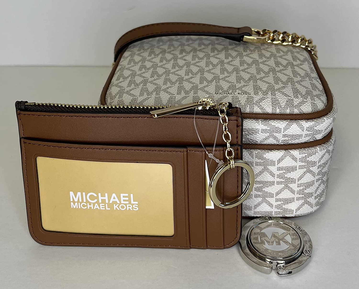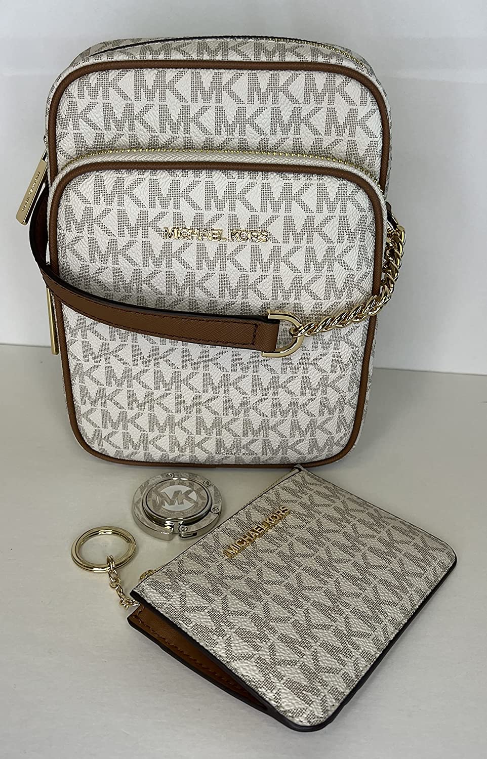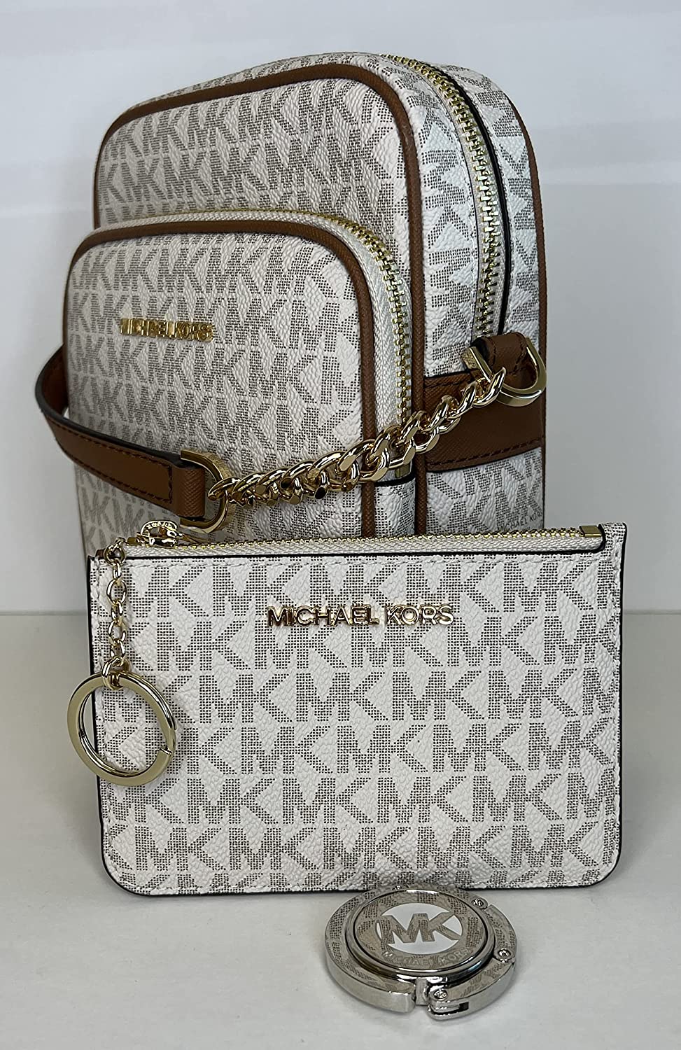 • Bundle of 3 items: Michael Kors Jet Set Travel Medium Logo Crossbody bundled with Michael Kors SM TZ Coinpouch & Purse Hook