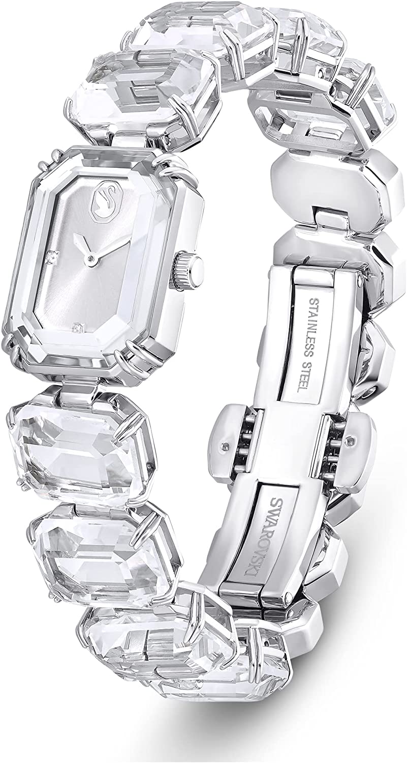 Items delivered: (1) Swarovski Millenia watch with clear octagon cut crystals, sapphire glass centrepiece and stainless steel accents, complete with Swarovski watch box