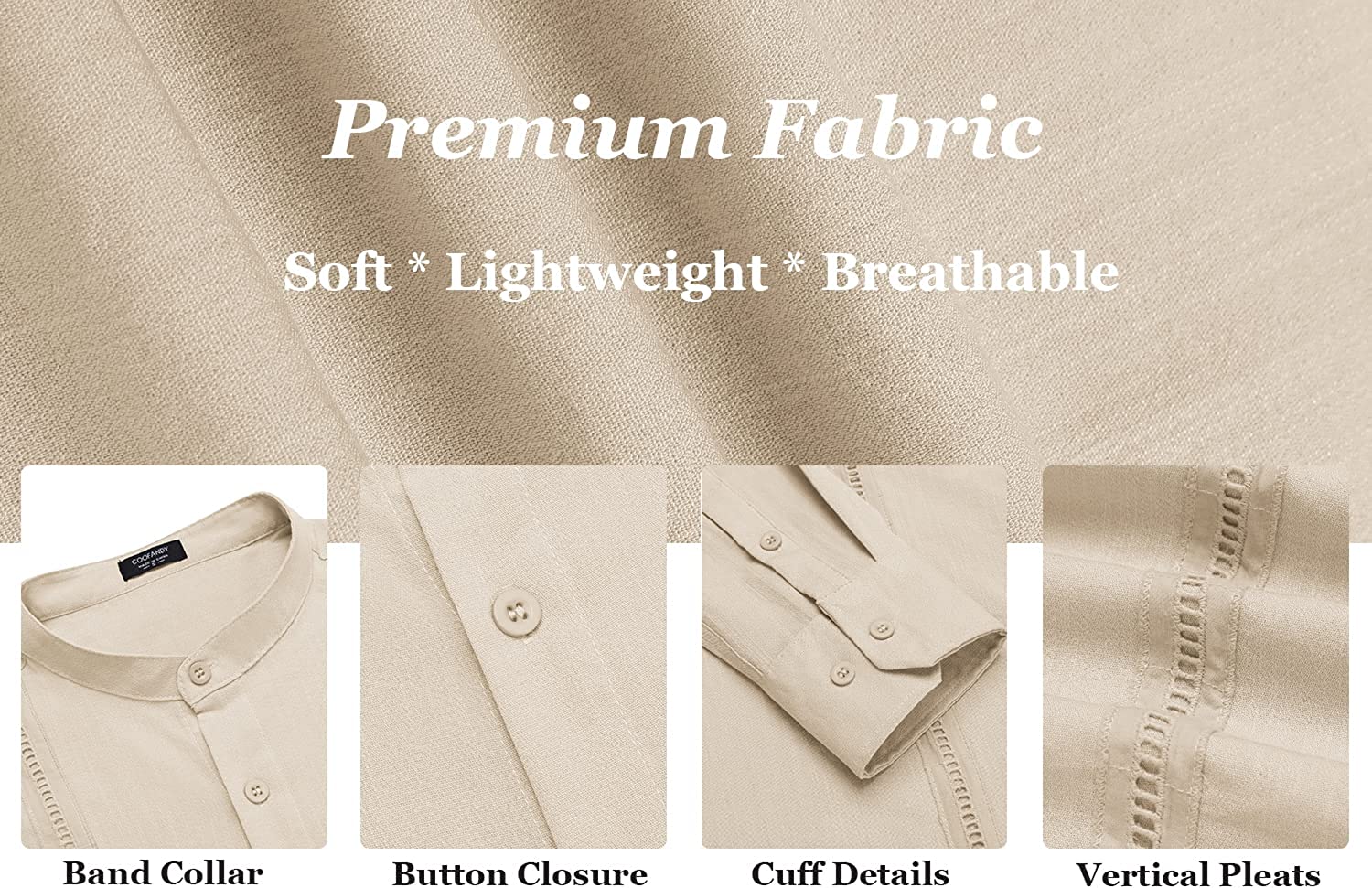 COOFANDY Men's Long Sleeve Button Down Banded Collar Casual Summer Beach Shirts