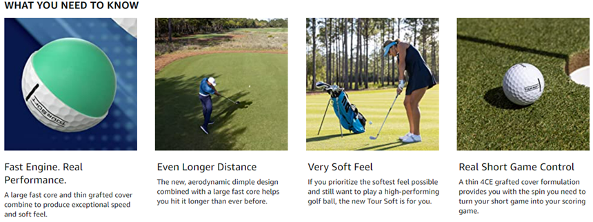 The new Titleist Tour Soft golf ball is engineered to perform tee-to-green. Featuring a large, fast core for exceptionally soft feel and a new, more efficient aerodynamic package that will help you experience longer distance off the tee.
