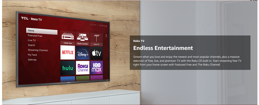 The TCL 3-Series is the simply smart way to enjoy endless entertainment. Enjoy over half a million movies and TV episodes available to stream plus sports, news, music, kids and family, food, science and tech, fitness, foreign language and so much more. Start streaming free TV right from your home screen or browse 250+ free live channels with the Live TV Channel Guide to find what to watch next. Your favorite broadcast TV, streaming channels, gaming console and other devices are front-and-center within a simple, customizable home screen. There’s no more flipping through inputs or wading through complicated menus. The super-simple remote—with about half the number of buttons on a traditional TV remote—puts you in control of your favorite entertainment and includes one-touch shortcuts to popular channels like Netflix.
