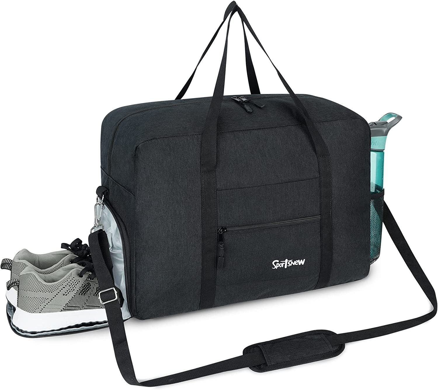 Shoes & Water Bottle Pockets Design: This sports duffel features a separated zipper compartment on the left side for shoes, laundry or dirty gear storage. Two slip-in mesh pockets on the right side are each sized to fit a water bottle( 800ml)
