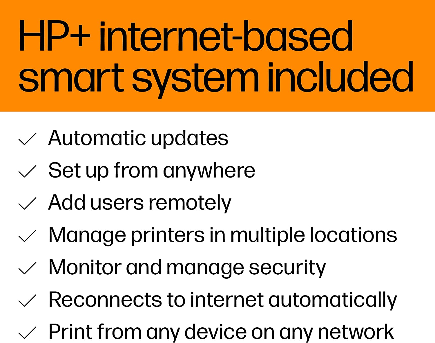 POWERFUL SMART FEATURES FOR SMALL AND REMOTE TEAMS – HP+ internet-based system keeps the printer up to date automatically, solves connectivity issues, and more