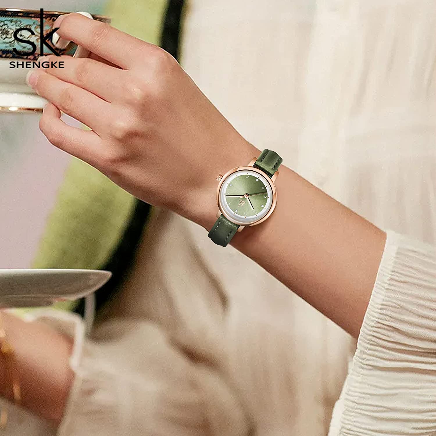 SHENGKE Women's Watch Leather Band Luxury Watches for Women Waterproof reloj para Mujer
