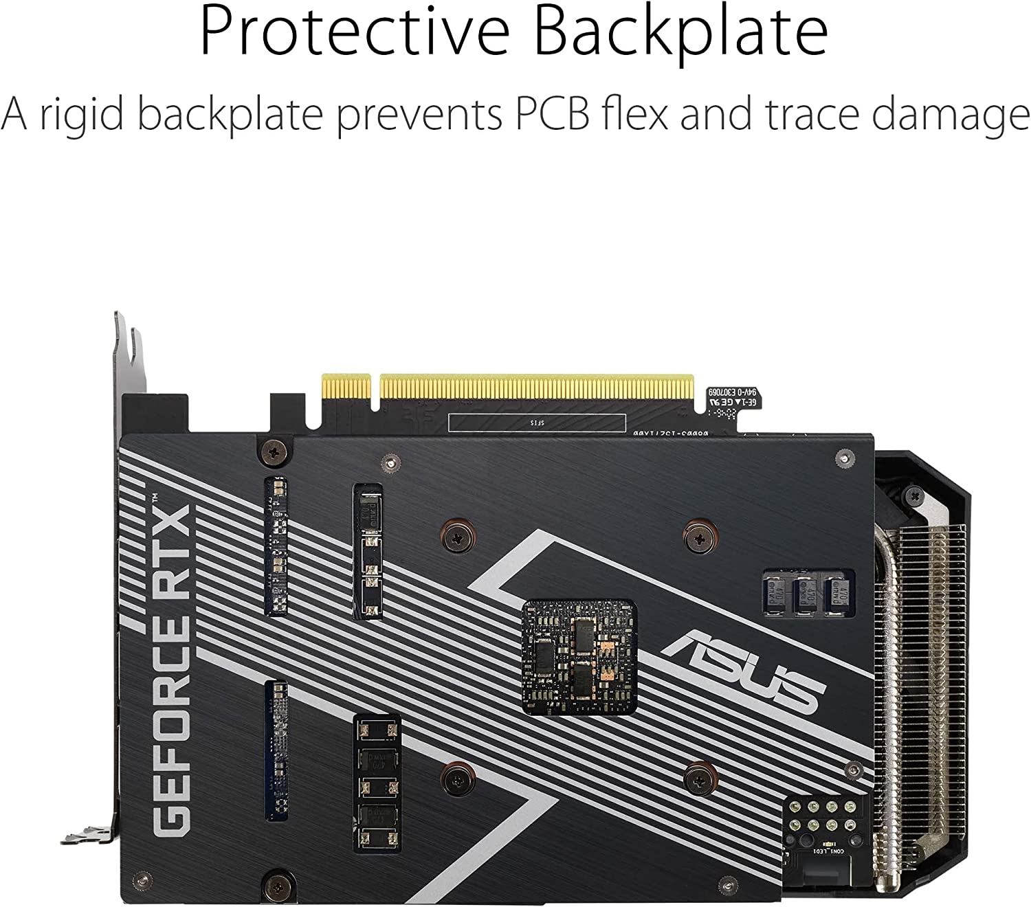 ASUS Dual GeForce RTX 3050 fuses dynamic thermal performance with broad compatibility. Advanced cooling solutions from flagship graphics cards — including two Axial-tech fans for maximizing airflow to the heatsink — are packed into the 20 cm long, 2-slot card, delivering more power in less space.