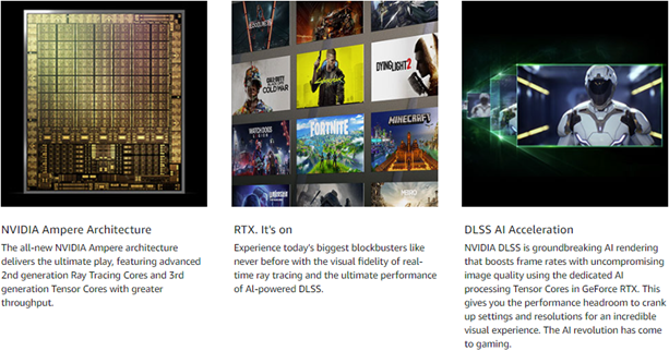 - 3rd Generation Tensor Cores: Get up to 2X the throughput with structural sparsity and advanced AI algorithms such as DLSS. Now with support for up to 8K resolution, these cores deliver a massive boost in game performance and all-new AI capabilitiesAvoid using unofficial software