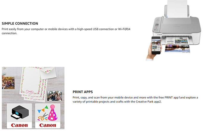 - SIMPLE CONNECTIVITY - Print easily from your computer or mobile devices with a high-speed USB connection or Wi-Fi connection. You can also easily print from your mobile devices using the Canon PRINT app, AirPrint, Mopria Print Service, or from computers with built-in Wi-Fi.