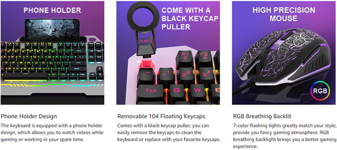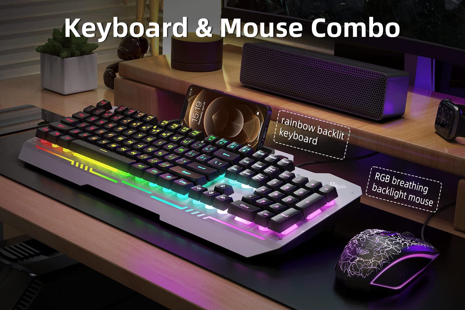 - COOL RGB RAINBOW BACKLIGHT: With a rainbow backlit keyboard and RGB-breathing backlight mouse, you can customize your keyboard backlight/brightness/speed. 104 full-key with anti-ghosting technology comes with an excellent visual feast.