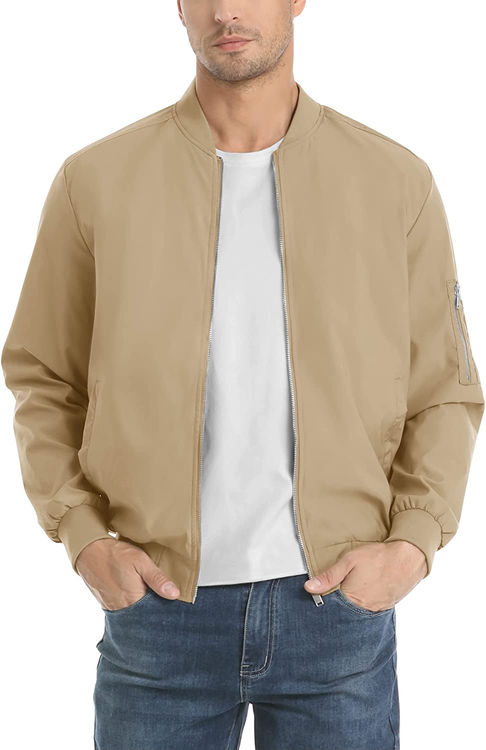 Men's Lightweight Jacket Casual Bomber Jacket Windproof Windbreaker Jacket Full Zip Up Coat