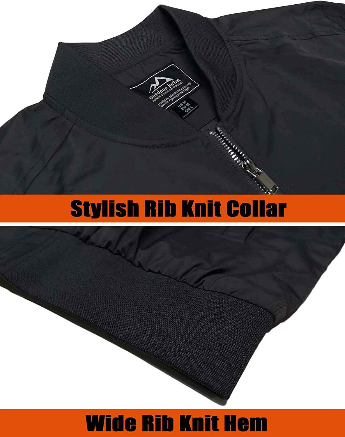 • Design: Bomber jacket with ribbed knit stand-up collar; classic rib knit hem and cuffs for comfortable fit.