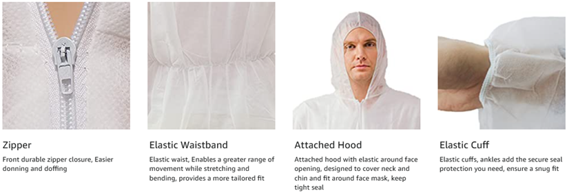 2. Elastic features for a better fit, Elastic waist to better position the garment and elastic opening for tighter fit at wrist and ankle and add the secure seal protection you need ensure a snug fit.