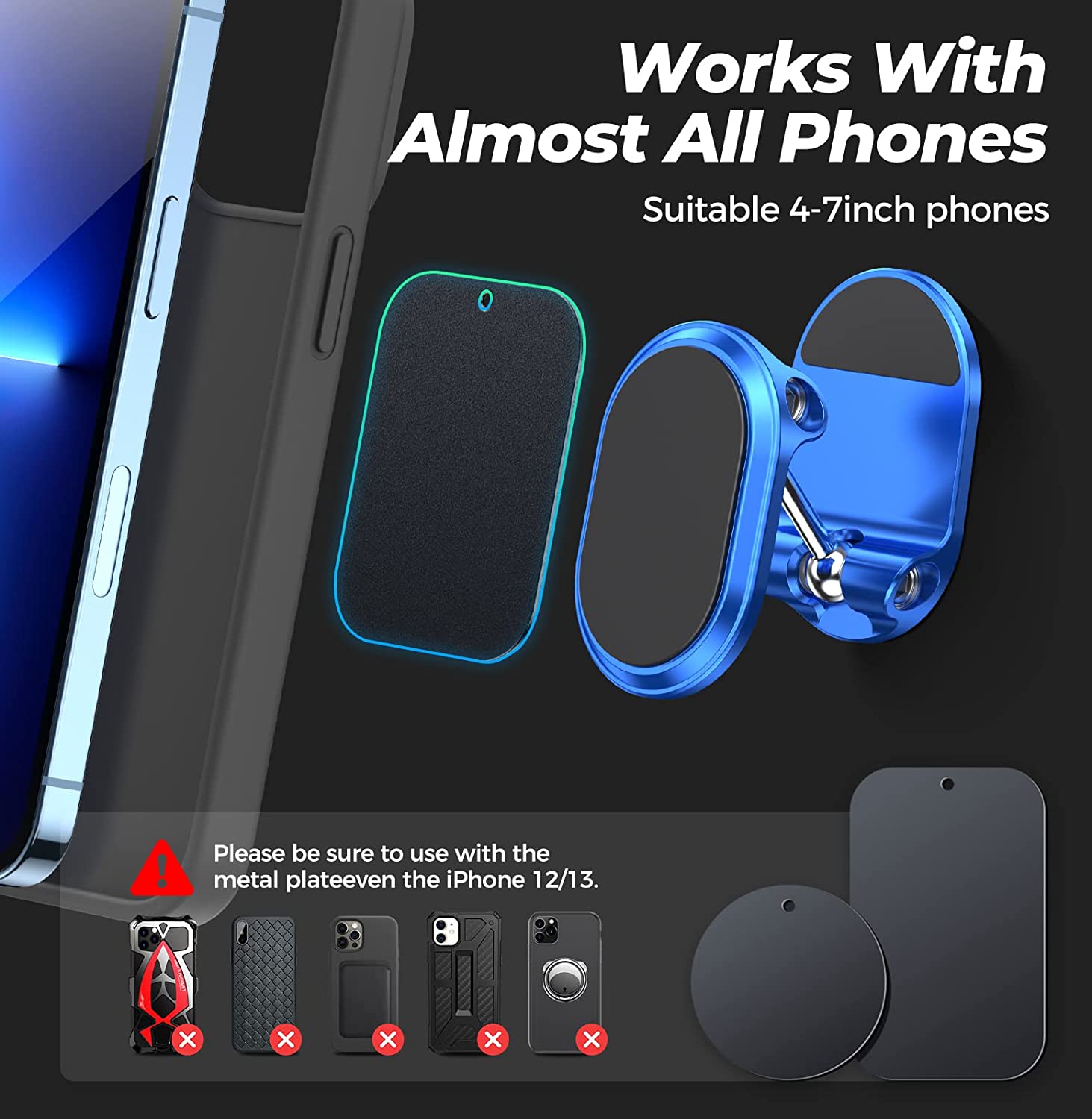 Magnetic suction and adsorption: 60 times N52 magnetic suction to hold your phone firmly (please be sure to use it together with the metal plate).3M high and low temperature resistant stickers, even at 40 degrees Celsius, will not fall off.