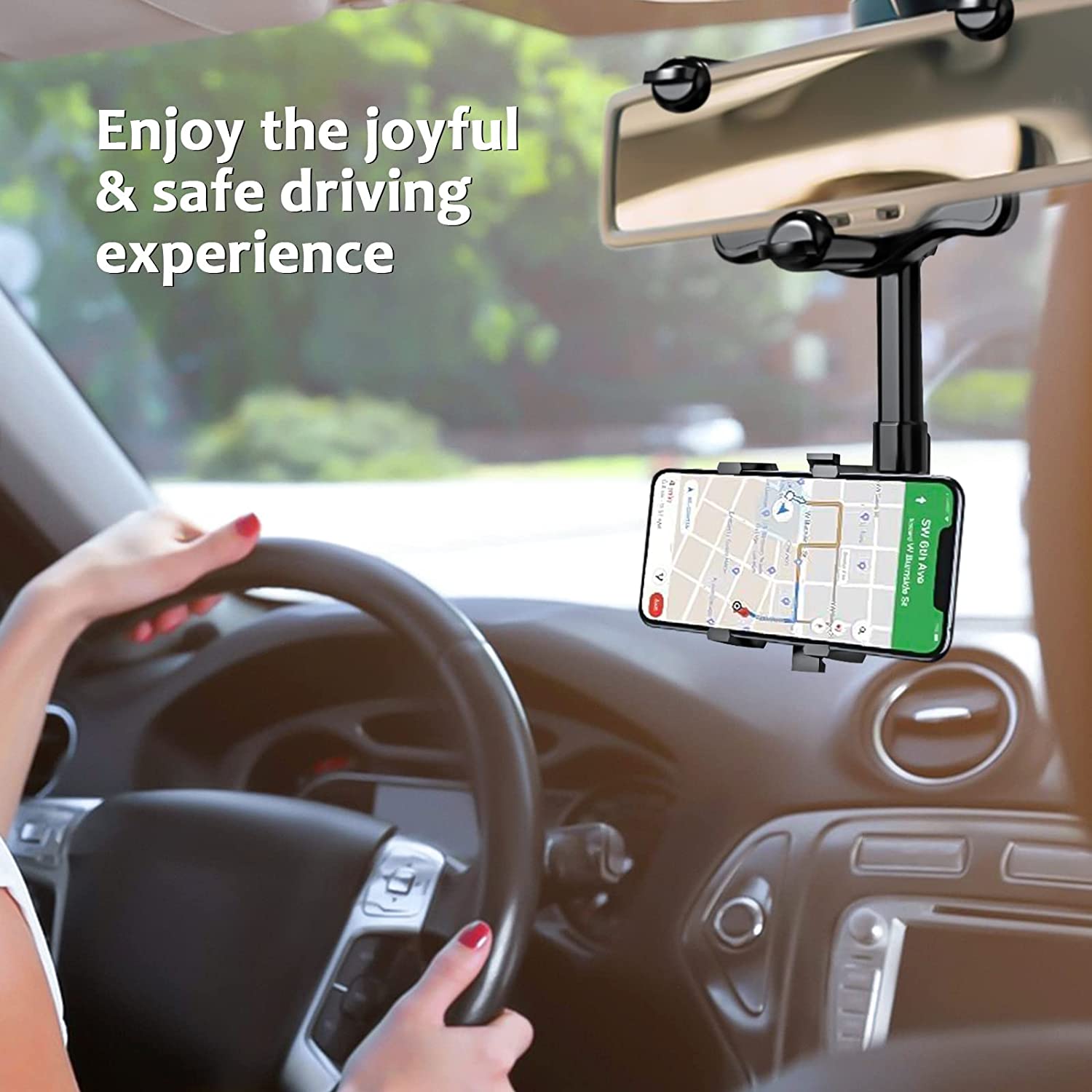 SFAE CAR ACCESSORIES: The car phone holder is installed on the car rearview mirror and kept level with it to keep your sight on the road. No need to look down at the navigation, you can get a more comfortable and safer user experience with this mobile phone holder.