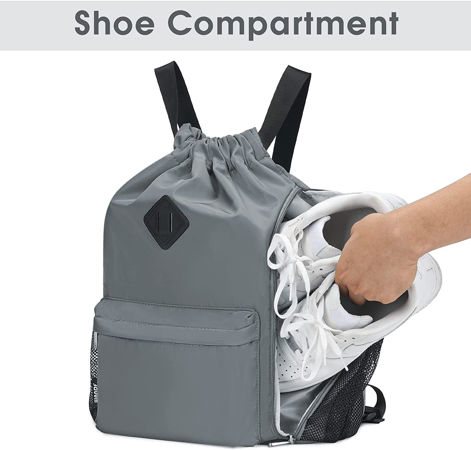 Separate shoe compartment: This gym backpack has a shoe compartment to storage your shoes or other sports accessories to separate from the rest of your belongings. It also can be a normal pocket for your daily use.