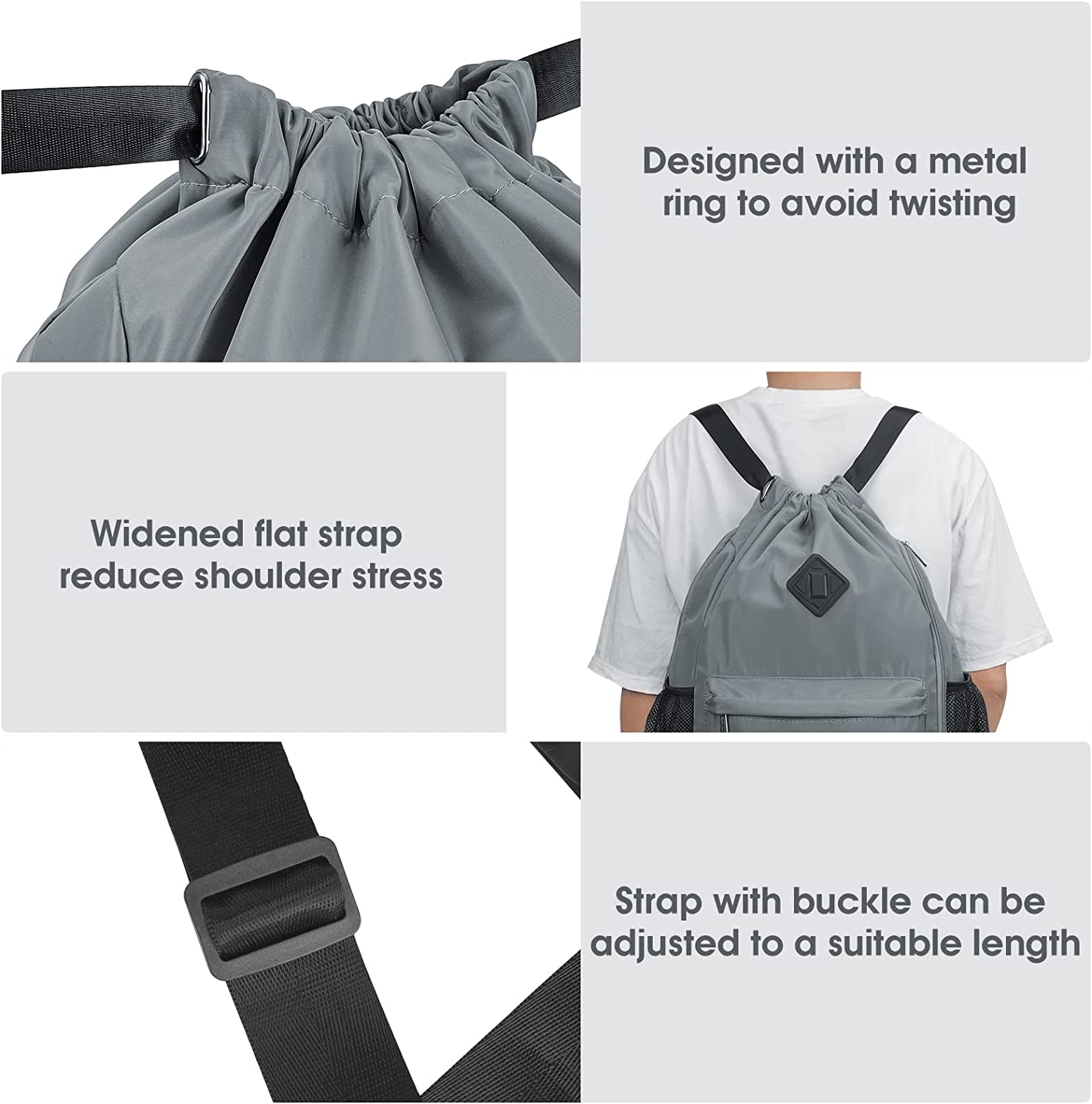 Organized multipockets: A hidden back pocket of string backpack keeps your cell phone and wallet safe, while a front zipper pocket makes it easy to access keys or ID cards you don’t want to dig for. The 2 side mesh pocket keeps frosty water bottles or wet umbrellas separate from the rest of your gear.