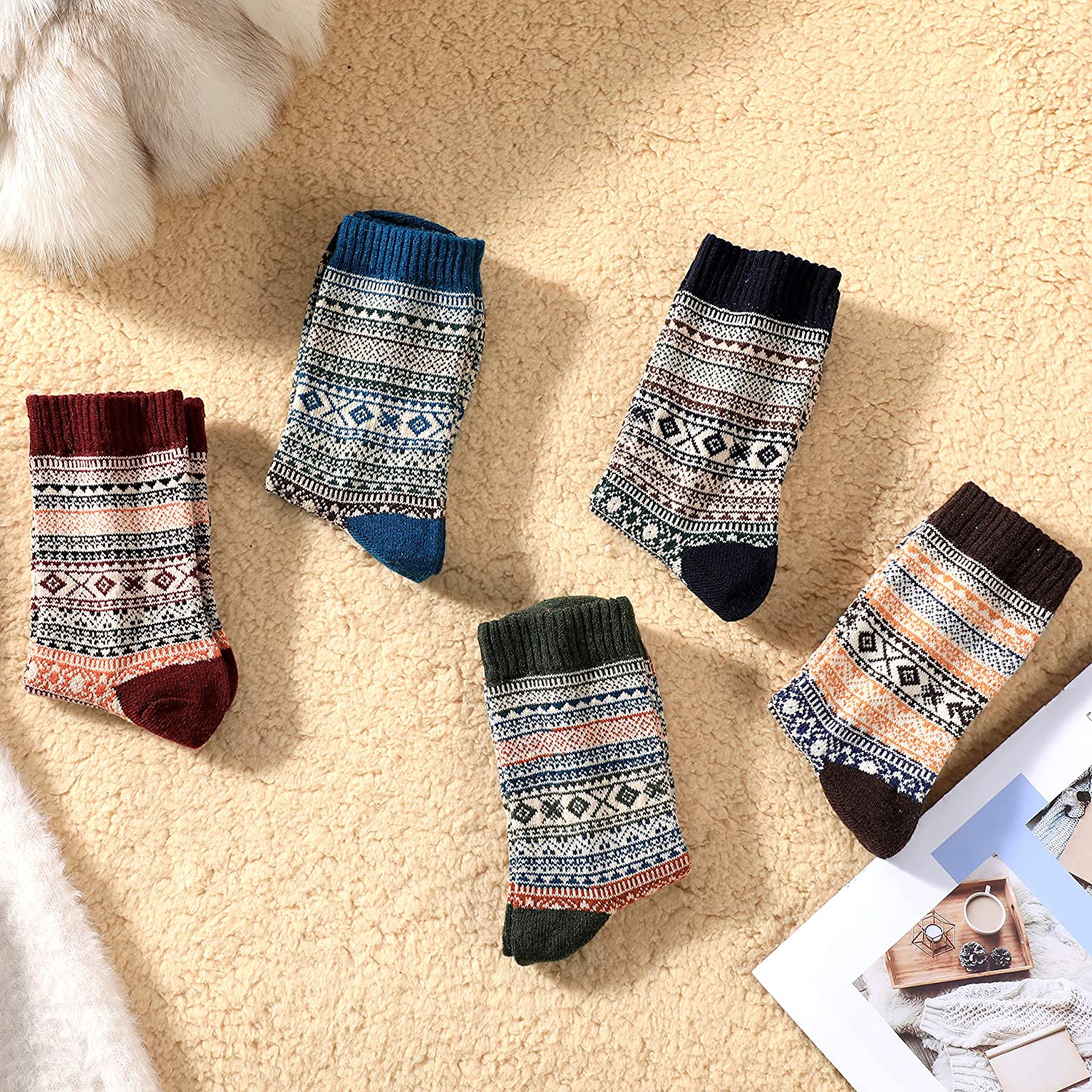 ?CHIC DESIGNS - With unique pattern, vintage trendy designs and easy-matching colors, our warm winter socks are befitting for different situations and coordinate with whatever you're wearing. These vintage wool socks are good matching for all your sneakers, boots, snow boots, and sport shoes. Brighten up those cold winter mornings with thick knit thermal wool socks and keep your feet warm.