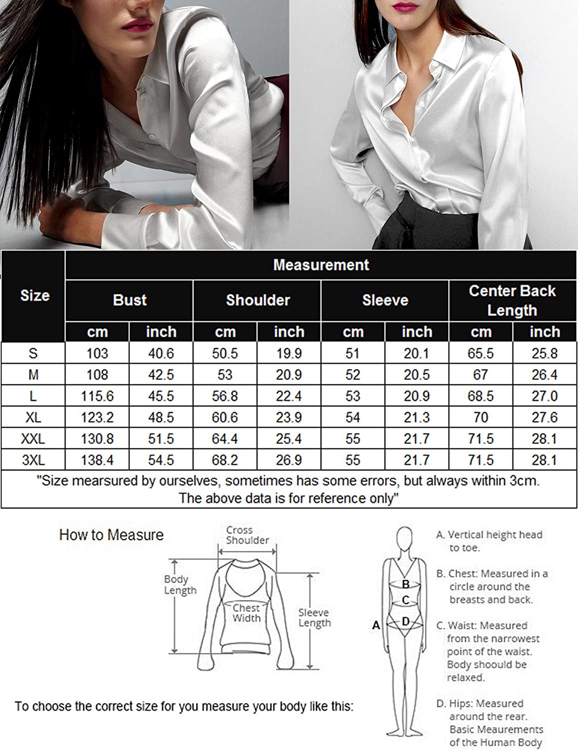 Classic Design - Never goes out of style. Satin silk button down shirts, long sleeve blouses, dressy V Neck tops, casual loose fit work shirt, turn down collar business blouse, drop shoulder tunic tops