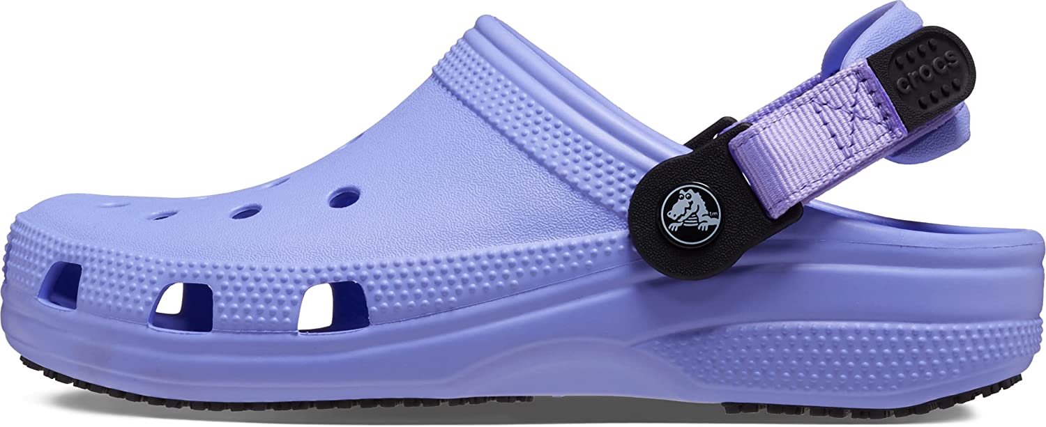 CROCS FOR EVERYONE: Enjoy the comfort and style of the iconic clog, now with a slip-resistant outsole and unique adjustable heel strap.