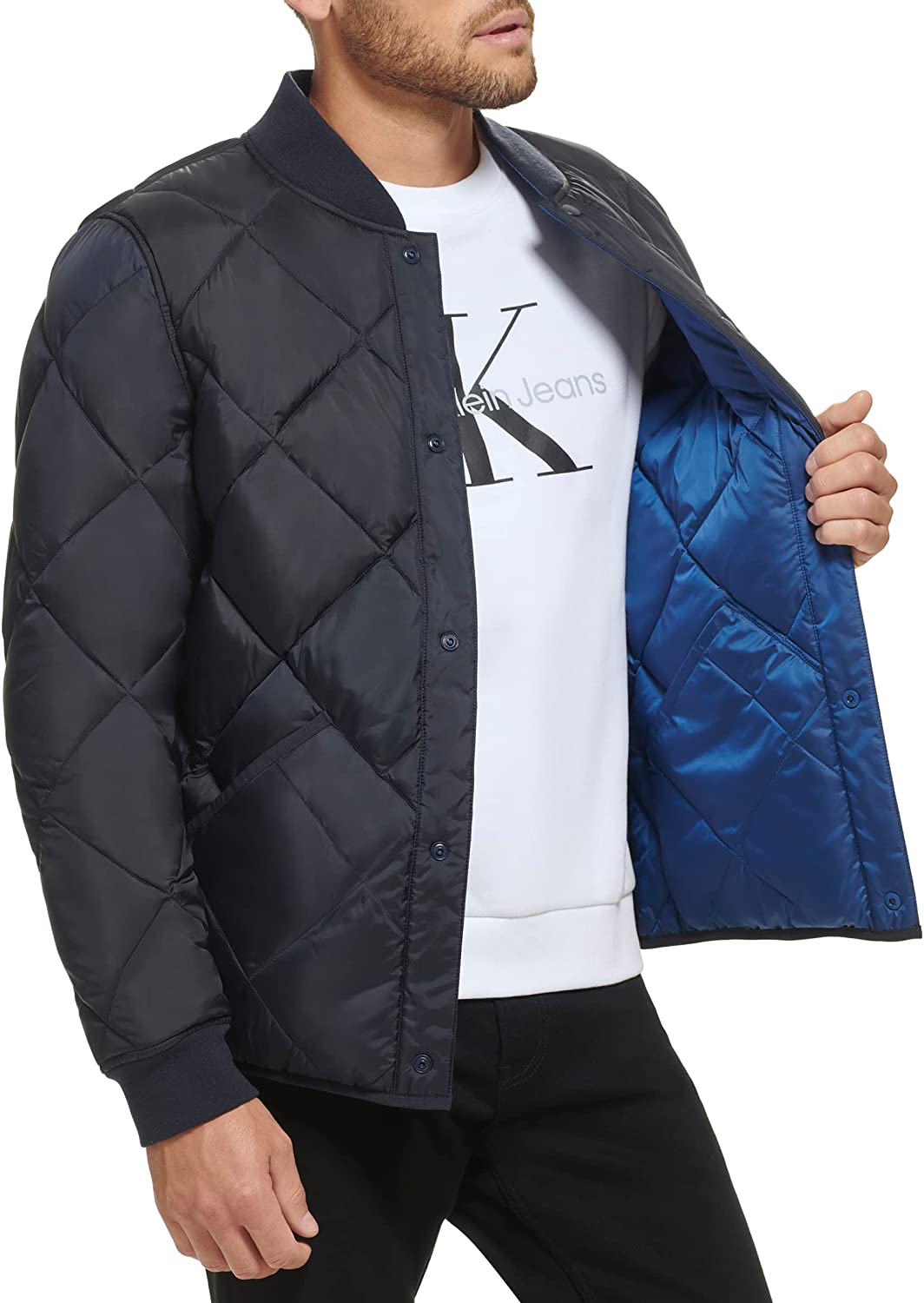 This Calvin Klein mens OUTERWEAR Jacket is a snap closure essential everyday reversible Jacket