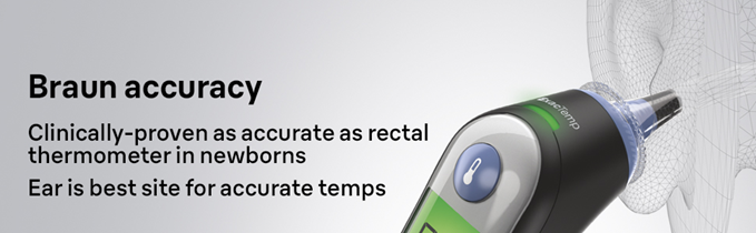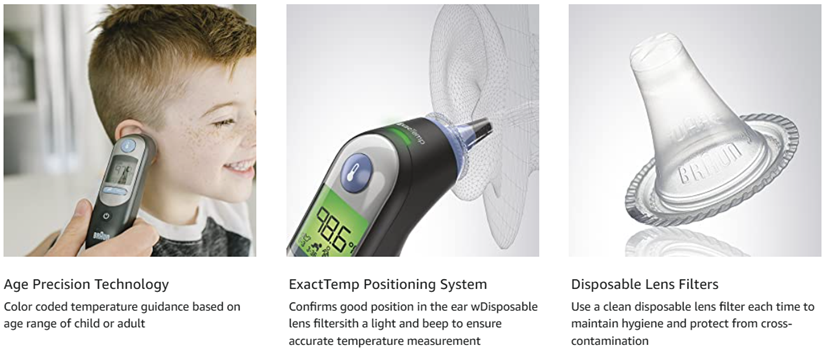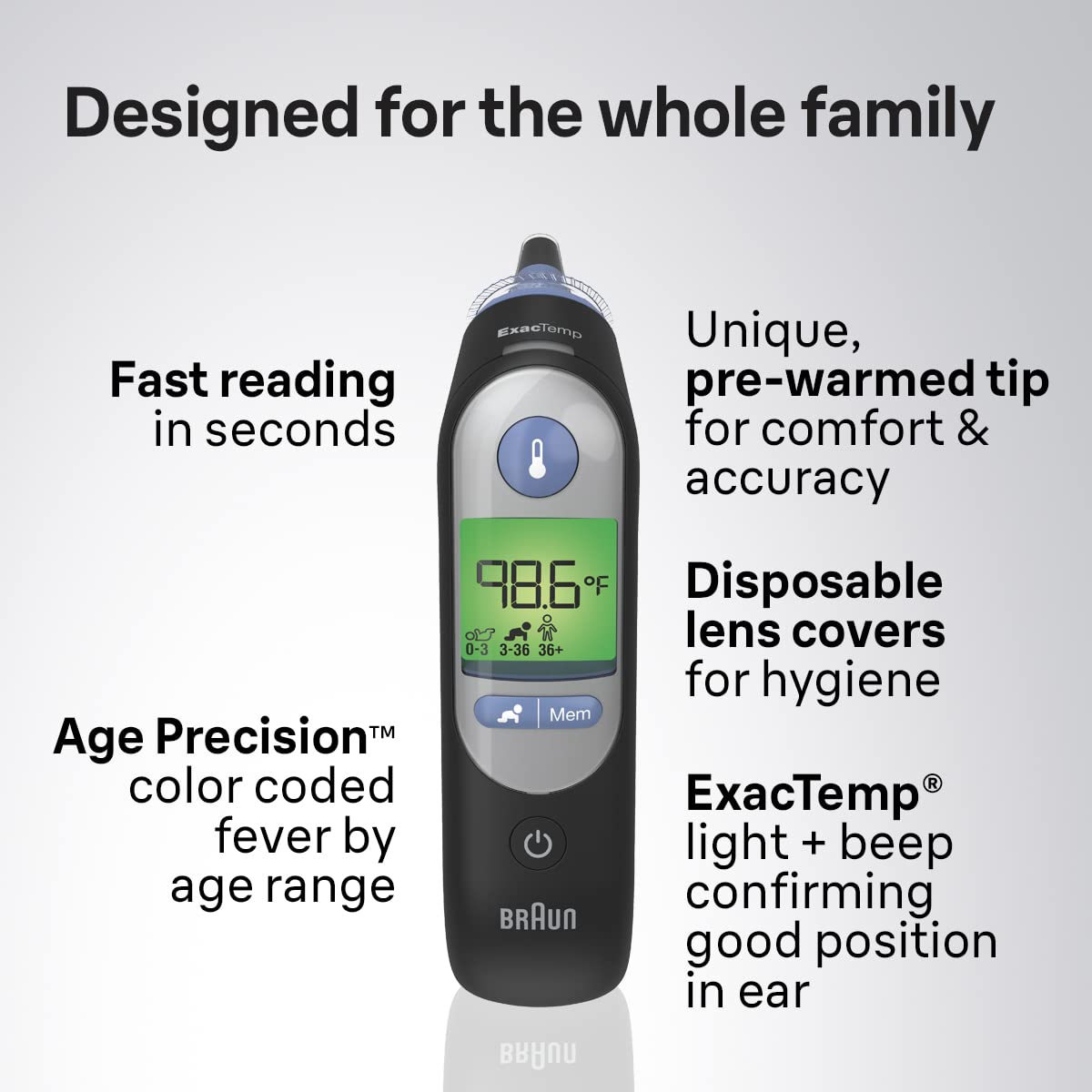 • SANITARY SHARING – It’s not just a baby thermometer for infants, this gentle Braun thermometer can be used for the whole family. The disposable ear thermometer covers/lens filters make sharing sanitary.