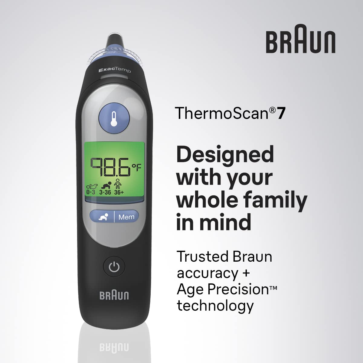 Braun ThermoScan 7 – Digital Ear Thermometer for Kids, Babies, Toddlers and Adults – Fast, Gentle, and Accurate Results in 2 Seconds - Black, IRT6520