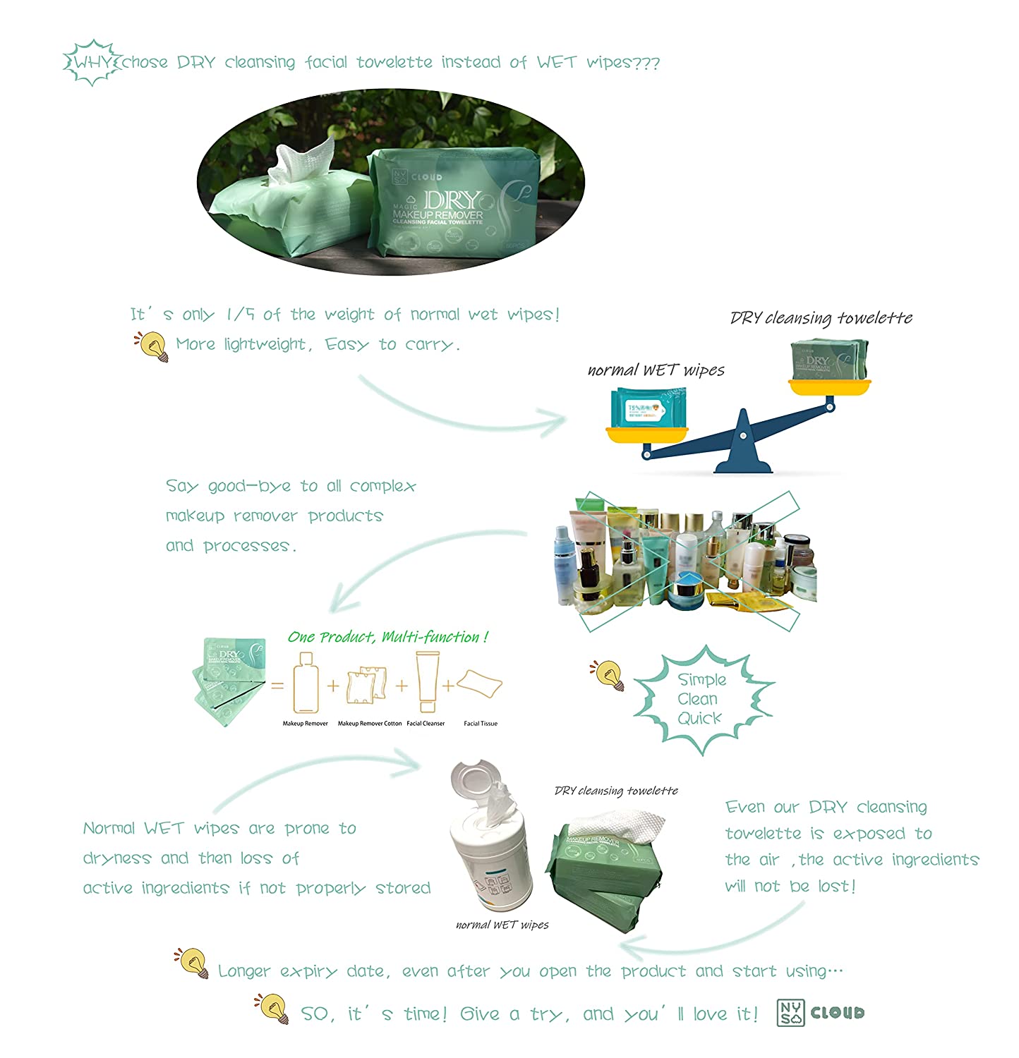 MAGIC dry style makeup removal face cloth, become makeup remover wipes in seconds with a little water. Say goodbye to those complex makeup removal processes, start this more convenient and simple way for makeup remover everyday. *Save your time*