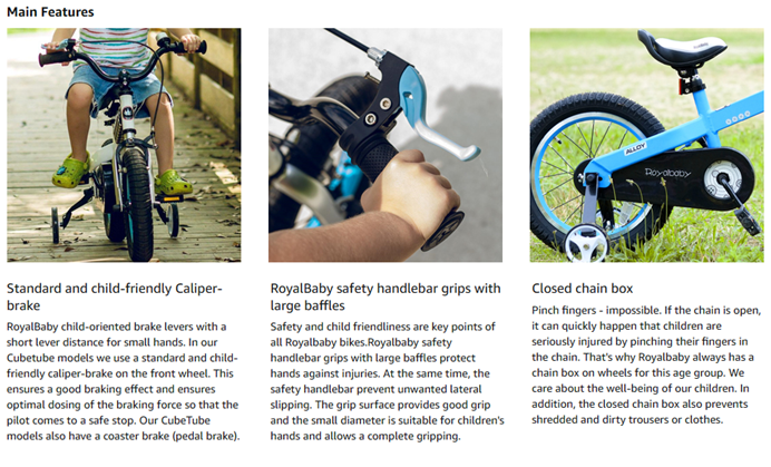 | Special Feature | Handbrake and coaster brake, Adjustable Handlebars, Quick Release Seat, RoyalBaby exclusive premium parts, Adjustable Seat |