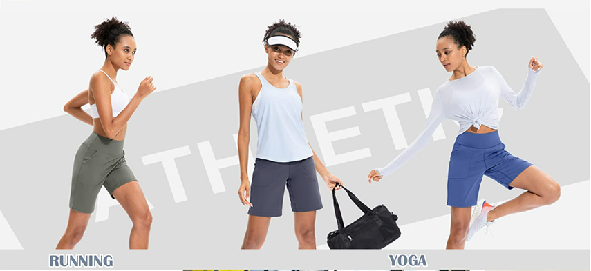 [3 Pockets] The womens bermuda shorts features one back zipper pocket on waistband and two side pockets are deep enough to hold your phone, cards or keys without falling out, free your hands during running or exercise.