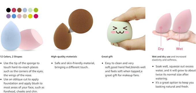 【High Quality】Our makeup sponge set is made of latex-free multi-color material, soft to the touch, please gently pat to create a gorgeous makeup.