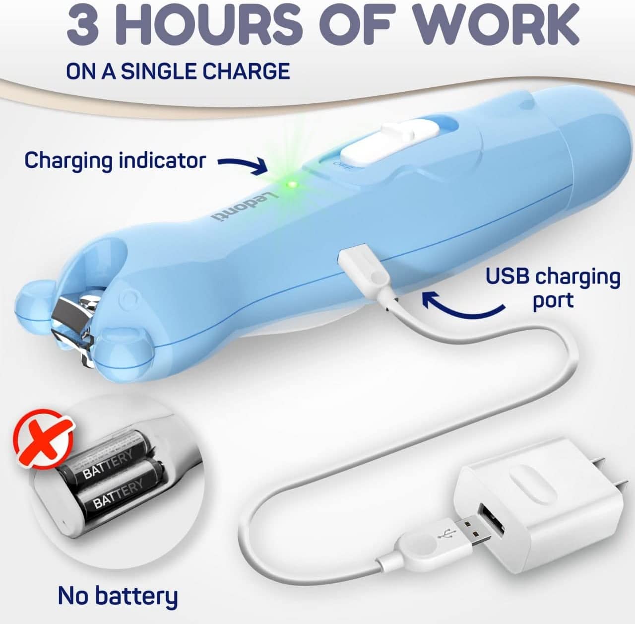 NOISELESS & LED LIGHTED: No more guessing while grinding your baby's nails. The in-built LED light guarantees safe trimming and ultimate visibility even when the lights are out. Nothing will trouble your kid's sensitive sleep due to the whisper-quiet motor (less than 35 DB).
