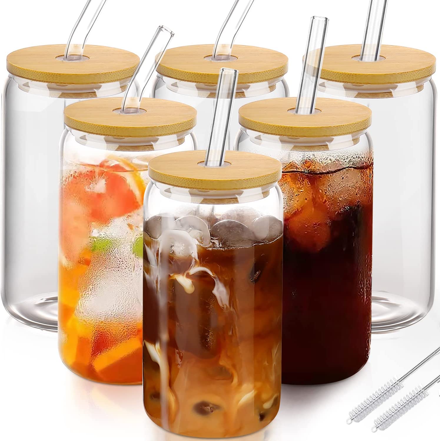 . Make sure this fits by entering your model number.  ✅Drinking Glasses with Glass Straw: These clear glass cups sets are made of high quality and durable clear glass, BPA free, and are a very practical set of glass cup with bamboo lid and straw. The iced coffee glasses are dishwasher safe and great value for money.  ✅Unique Drinking Glasses Design: Modern and timeless, these glass can cup will be your go-to can shaped glass cups for serving any beverage.Glass tumbler with straw and lid, it’s the perfect sized cups, and the perfect cute glass cups for your finest and shiniest cocktails!Cute cups with lid and straw.  ✅Perfect Size: 16 oz - 3.0" Diam x 5.5 "H,drinking glasses with bamboo lids.Iced coffee cups with lids,are ideal for beer,cocktails or as an everyday glass drinking cups. The glass can with bamboo lid and straw is perfect for any occasion,It is widely loved in homes, kitchens, cafes and bars. You can use it as aesthetic cups,to make the perfect tea, boba bubble pearl milk tea,iced coffee, smoothies, juices...coffee bar accessories  ✅High Quality: The beer can glass with bamboo lid and straw is made of heat and condensation resistant borosilicate glass that can withstand sudden changes in temperature between -68°F to 212°F,which is stronger and more durable than common glass can tumbler that gives a smooth finish and a crystal clear look.Tall beer can glass keeps your hands cool while keeping your liquid hot.Can shaped glass cups with lids and straws,vasos de vidrio.  ✅For Daily Use: Clear cups with lids and straws,can be used as an coffee glass cup. Clear glass body to DIY any decoration you want to make your unique glass coffee tumbler. Popular as:glass cups with bamboo lids and straws,can glasses with lid and straw,bamboo glass cup...