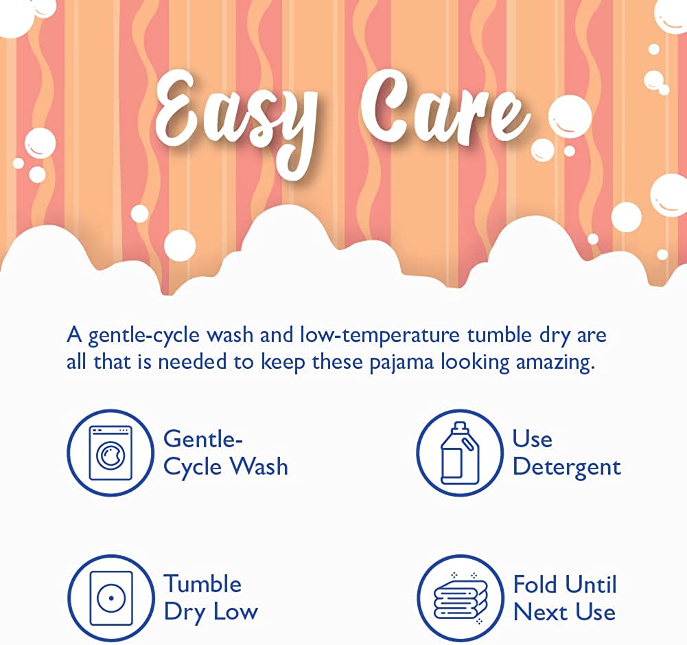 - EASY CARE: Made from 100% cotton with expert stitching for added durability; our kids’ pj’s will last through many nights of bedtime adventures. For best results; wash them with mild detergent on a gentle cycle and tumble dry on low