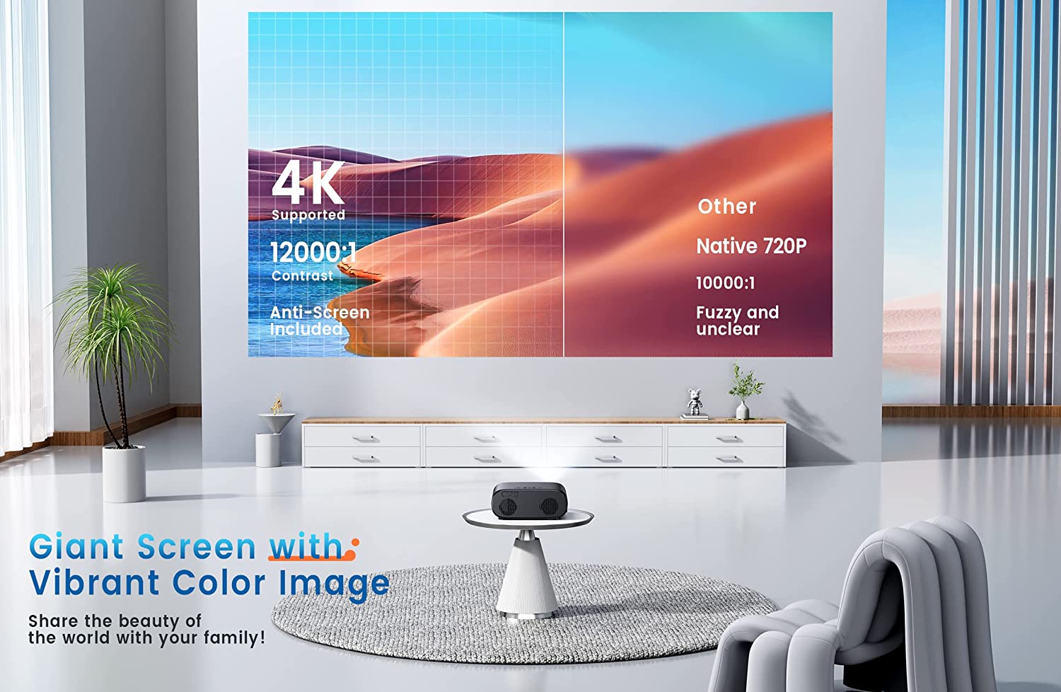 ▲【18000L Brightness+Native 1080P+ 4K Supported+Screen Included】With imported light-gathering tech glass lens & 19000L Brightness, this HD projector is 35% brighter than other 1080P projectors. Native 1080p resolution projects every detail clearly even hair. 90% wide color gamut and powerful 12000:1 contrast allows this proyector to be used in daytime with crystal clarity. The included 100" anti-light screen improves the contrast ratio by 20% for a more colorful image. Enjoy the visual feast!