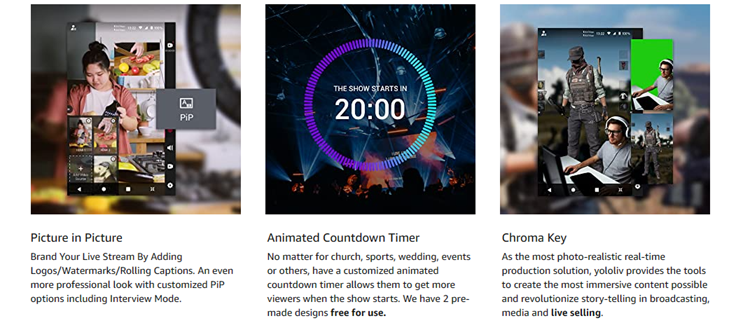 • All Pro Software Features Built-In: Various customizable graphic overlays(Logos/Watermarks/LowerThirds/Scoreboard/Social overlay/Animated Countdown Timers/) are all built-in with no additional cost. Users can also Feature Comment Overlays to the Stream to engage with your audience in real time.