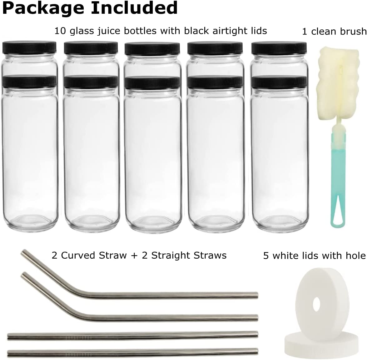 Wide Mouth Glass Water Bottle: The wide mouth make the juice bottles convenient to fill with ice cube, lemon slices or other fruits. It is also easy to clean with our bottle brush. And after purchasing, if you have any problems with our glass juice bottles, please feel free to let us know. We will solve it for you within 24 hours.