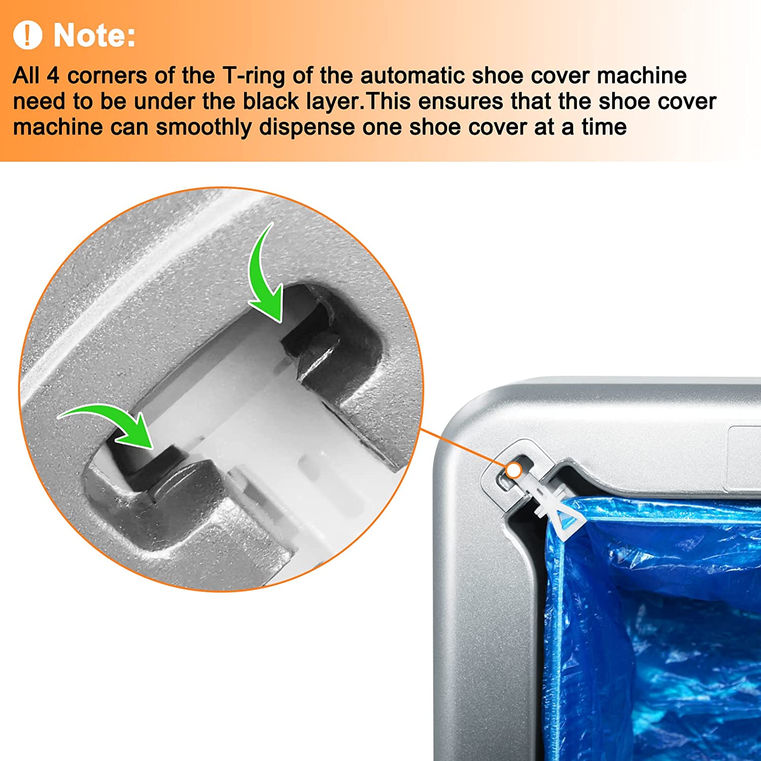 - 【Installation method】: The shoe cover machine has a mechanical spring, and the four T buckles need to be pressed down and then spring back, so that there is a 1mm gap between the top buckle and the second buckle. Press the pedal, the shoe cover will automatically release. If you are not careful when installing shoe covers, sometimes multiple shoe covers will be released at the same time or not all shoe covers will be released at once