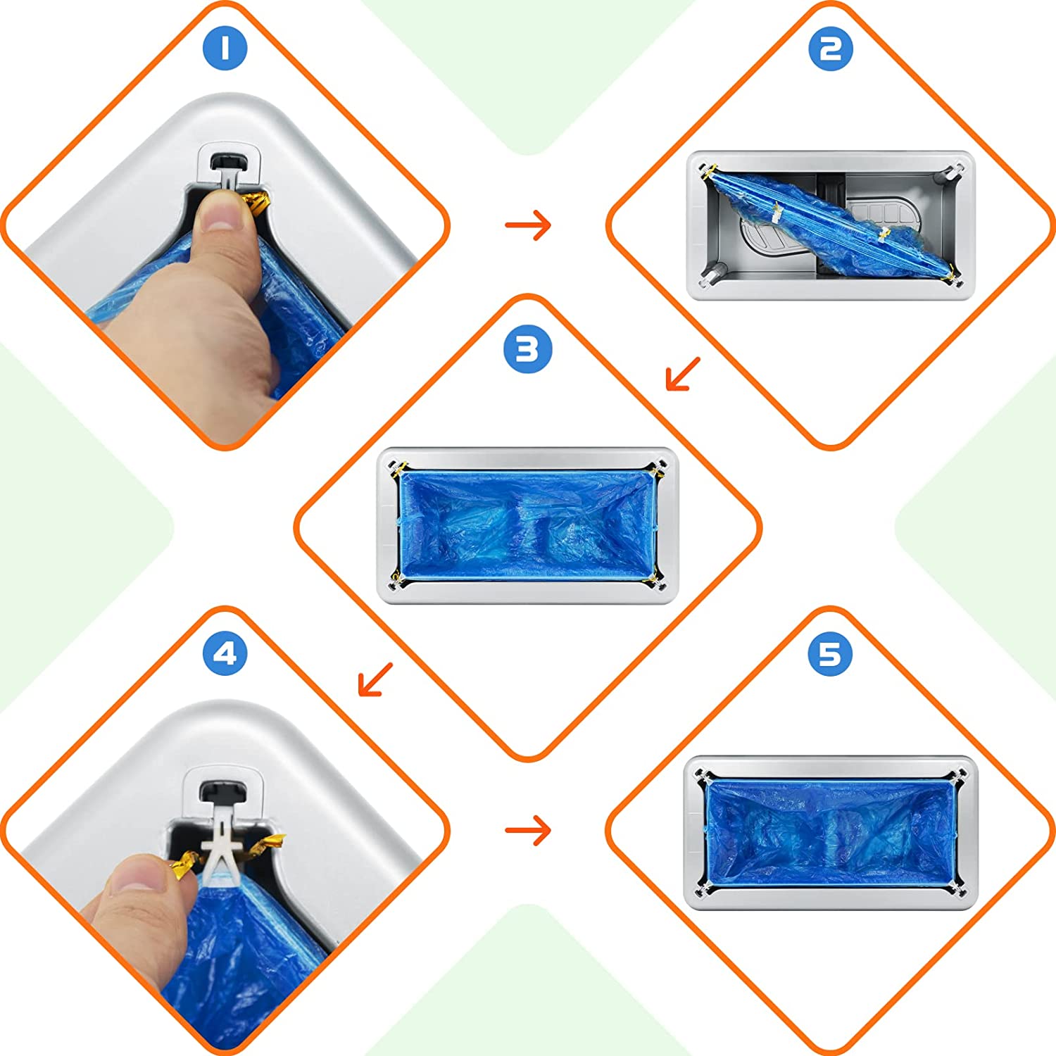 - 【Shoe Cover Machine】: The package includes 1 automatic shoe cover dispenser and 200 shoe covers. Made of thickened ABS material and mechanical springs, with a non-slip bottom and stabilizing hooks for added durability and stability, this durable shoe cover machine will last for years.