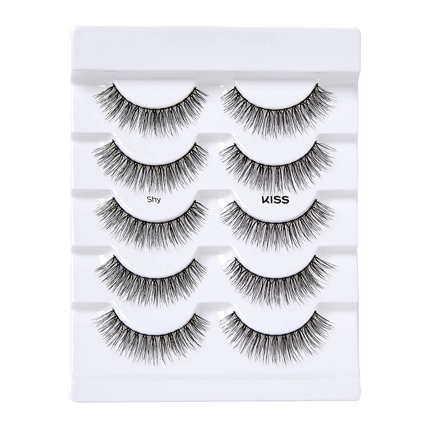KISS Looks So Natural False Eyelashes Multipack, Lightweight & Comfortable, Tapered End Technology, Reusable, Cruelty-Free, Contact Lens Friendly, Style 'Shy', 5 Pairs Fake Eyelashes