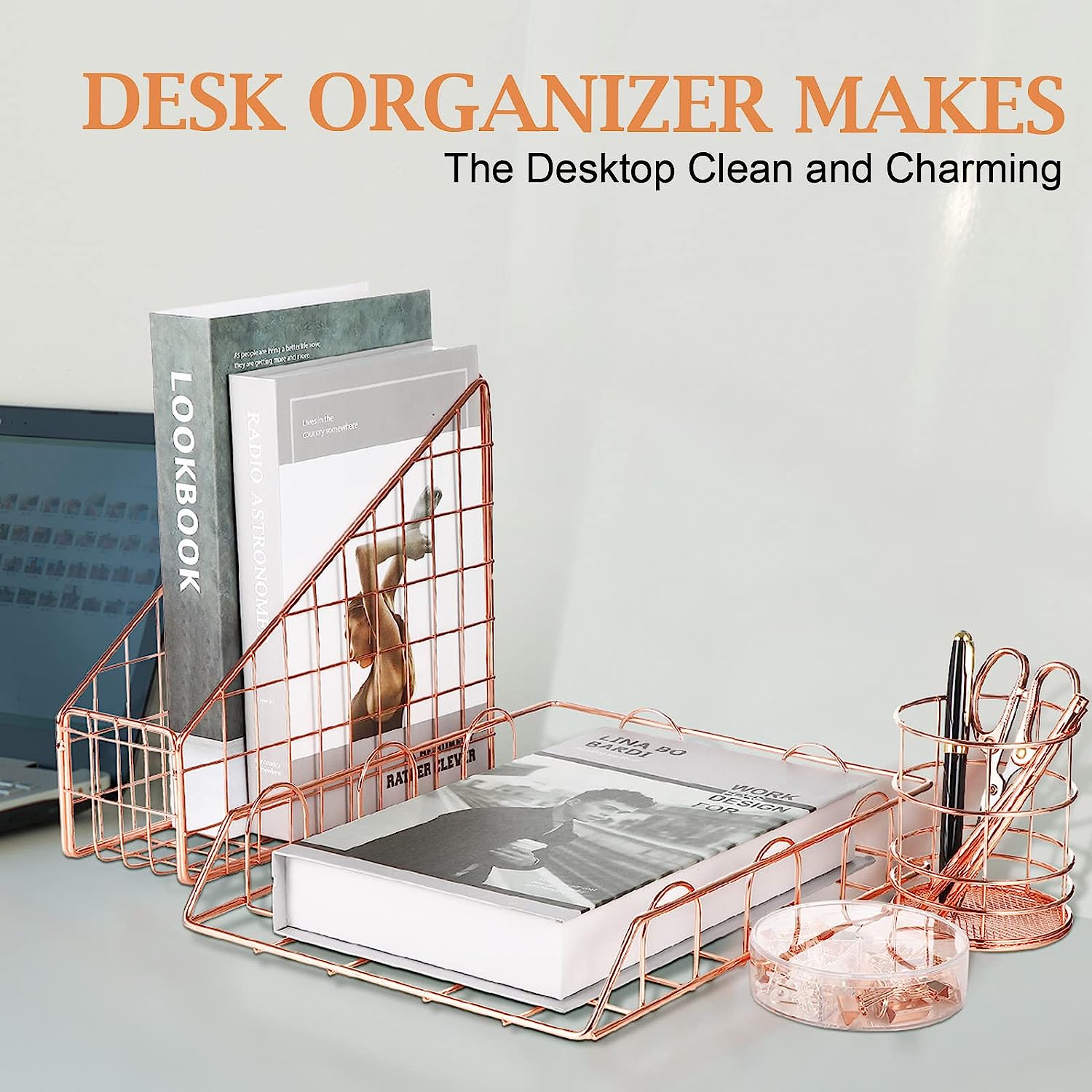 Features: The rose gold desk organizer set is proper in size and light in weight, convenient to store and carry, without taking up too much space.